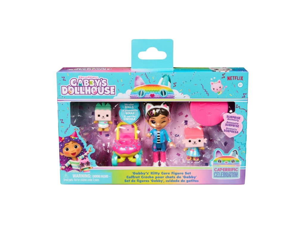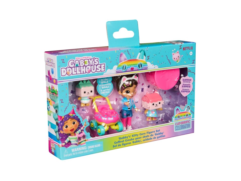 Vstupte do světa Gábinina kouzelného domku se soupravou figurek Jesličky! V této sadě figurek najdete Gábinu, kočičku Krabičku, miminko Krabička Beníček a jeho roztomiloučký dětský kočárek ve tvaru donutu! Každá figurka obsahuje autentické seriálu věrné detaily! Rozbalte si svůj vlastní zásilku z kouzelného domku a odhalte hračku s překvapení v podobě rozkošného medvídka! Pro další překvapení naskenujte QR kód, který je uvnitř zásilky z kouzelného domku, a odemkněte si speciální odměnu v bezplatné aplikaci Gábinin kouzelný domek (k dispozici pro iOS a Android). Hračky Gábinin kouzelný domek pro dívky a chlapce jsou skvělými dárky pro všechny děti, které jsou fanoušky tohoto seriálového hitu od Netflixu a rádi si hrají s domečky pro panenky. Zajistěte jim nezapomenutelný zážitek se světem roztomilých figurek, doplňků a nábytku do kouzelného domku, které mohou sbírat a libovolně skládat! Postavte si vlastní svět se základními stavebnicemi, jako je kuchyňka na hraní nebo hudební místnost, a spoustou sběratelských předmětů, jako je úžasná výletní loď, bazén pro mořské panny nebo zbrusu nová souprava Párty pokoj – podkroví kouzelného domku s krytým skateparkem a roztomiloučkými balkónky s mini antistresovými hračkami, které poskytují uspokojivou senzorickou hru a lze je bezproblémově zkombinovat s oběma verzemi kouzelného domku!Doplňkové parametry