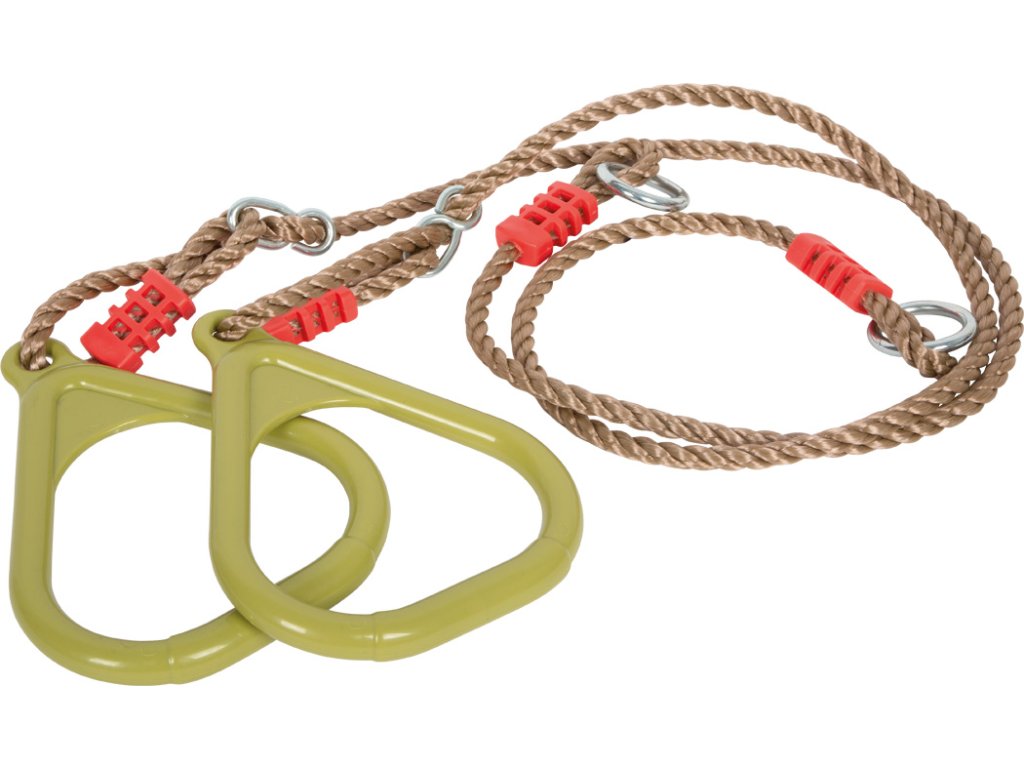 Díky praktickým kovovým závěsným kroužkům je lze během chvilky sestavit i sundat. Hlavní vlastnosti: kruhy z odolného plastujednoduché nastavení délkynosnost 100 kgvhodné dovnitř i ven