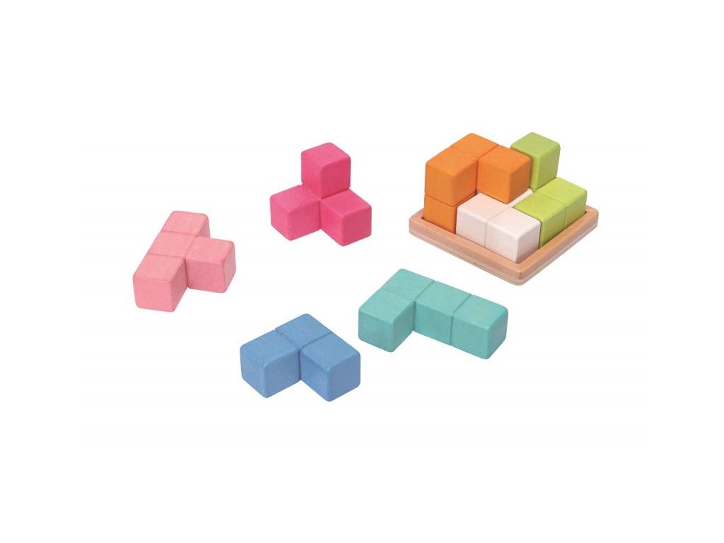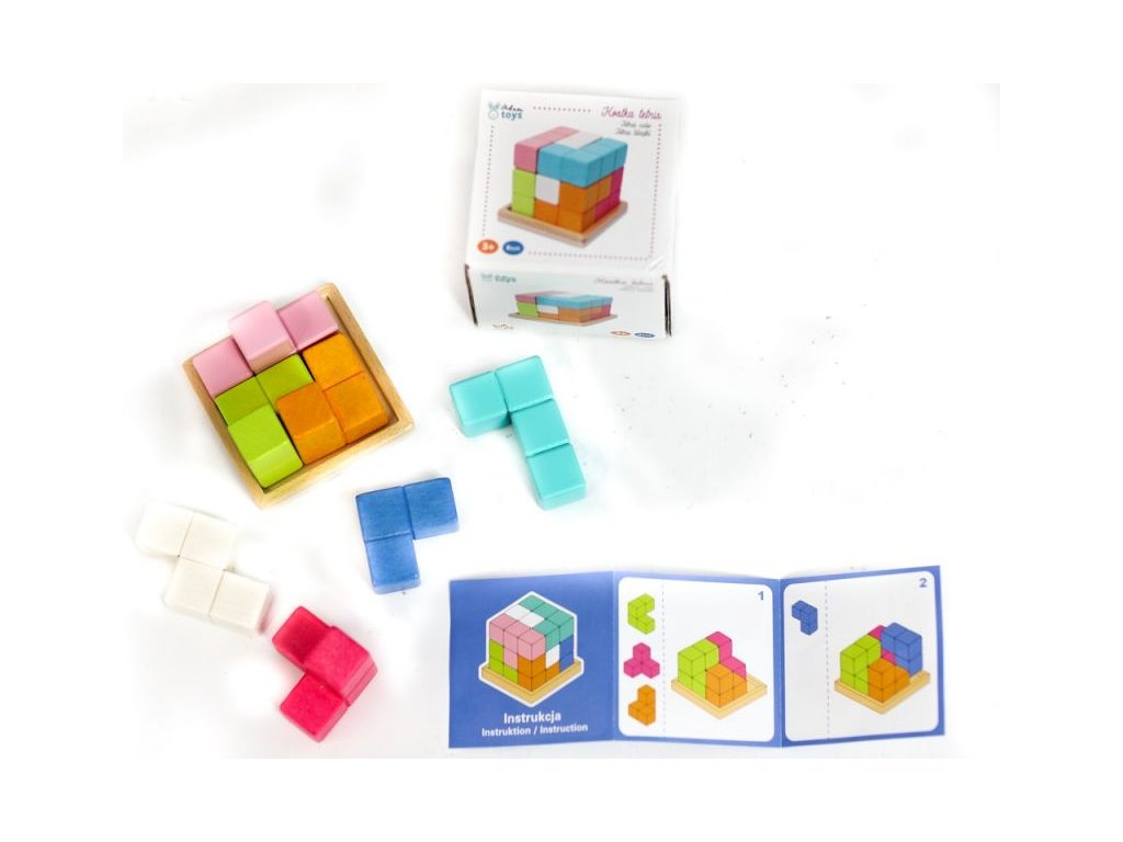 Dřevěná kostka TETRIS.Dřevěná kostka Tetris v barevné variantě. Základna se skládá ze