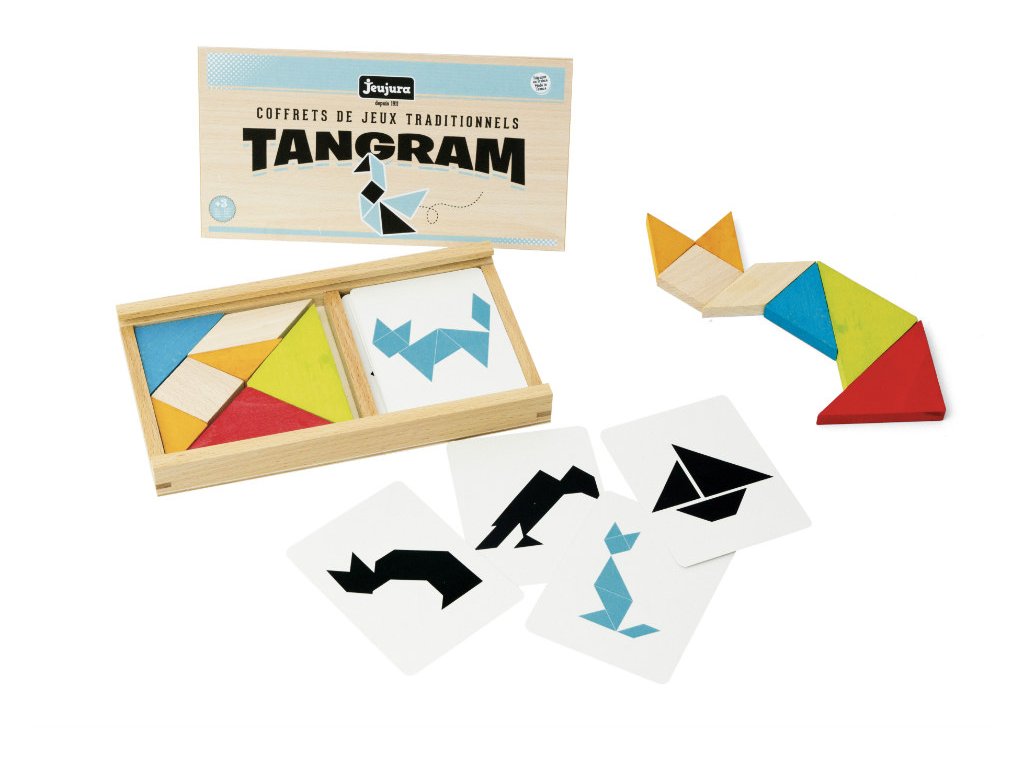 V dřevěné krabičce jsou uloženy barevné dílky různých velikostí a tvarů. Můžete stavět podle představivosti, nebo můžete použít kartičky s předlohami. Baleno v dřevěném boxu zdobeném sítotiskem. Souprava je vyráběna ve Francii, z masivního bukového a borovicového dřeva francouzského původu. Dřevěné součásti jsou ošetřeny výhradně za použití barev a laků na bázi vody, papírové příslušenství je potištěno rostlinnými inkousty.