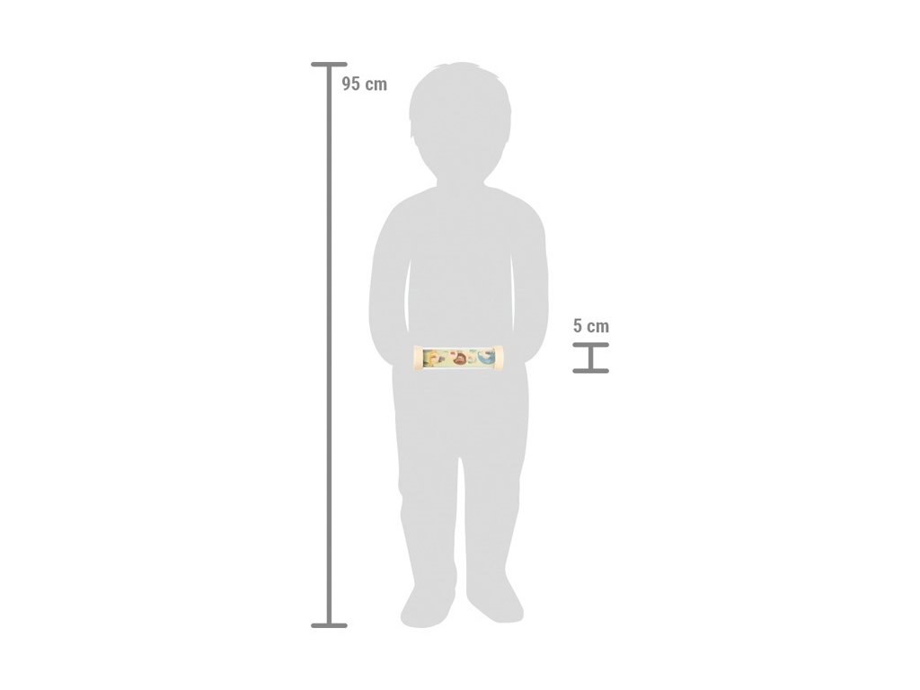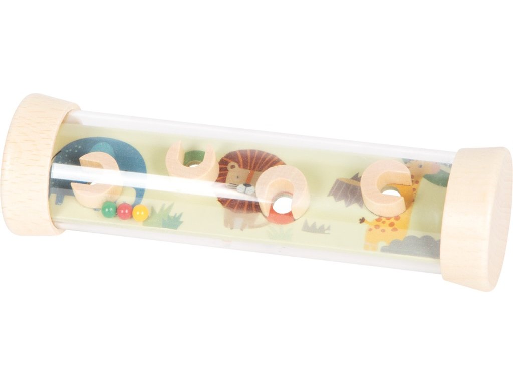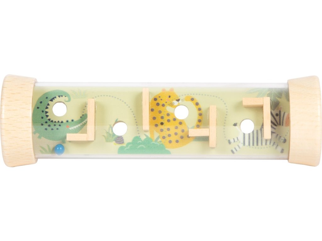 Tento oboustranný labyrint zaujme nejen děti ale i dospělé. Není to jen zábavná hra, ale také chrastítko. Kuličkový labyrint v robustní průhledné trubici rozvíjí motorické dovednosti dětí. A nebude to jednoduché umístit zároveň všechny 4 barevné dřevěné kuličky, které se uvnitř kutálejí, do otvorů. Na obou stranách labyrintu se děti setkají s divokými zvířátky, jako jsou krokodýl, zebra, lev, žirafa a další. Barevné provedení v jemných barvách v kombinaci se vzhledem přírodního dřeva je pro děti atraktivní a stimuluje jejich představivost. Velikost labyrintu je vhodná pro dětské ručičky. Trénuje obratnost, soustředění a trpělivost a zabaví děti nejen doma ale i na cestách. Je také vhodný jako dárek.