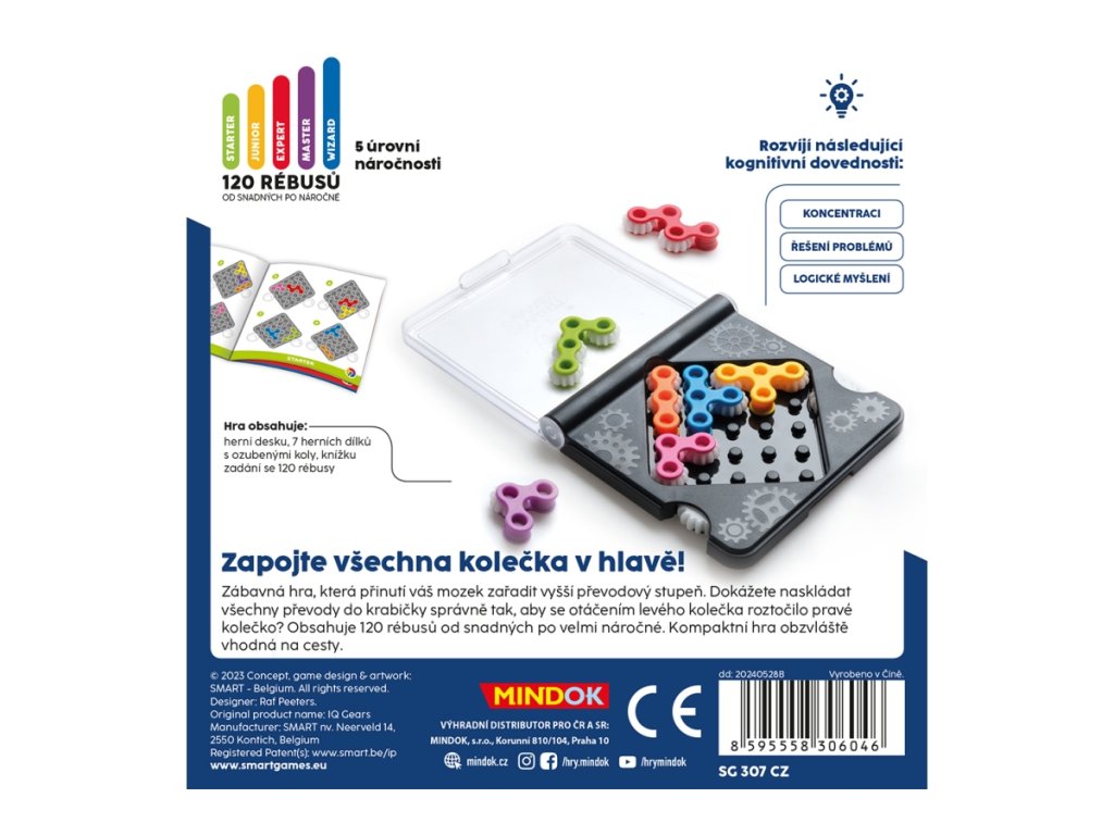 Zapojte všechna kolečka v hlavě! Zábavná hra, která přinutí váš mozek zařadit vyšší převodový stupeň. Dokážete naskládat všechny převody do krabičky správně tak, aby se otáčením levého kolečka roztočilo pravé kolečko? Obsahuje 120 rébusů od snadných po velmi náročné. Kompaktní hra obzvláště vhodná na cesty. Věk 7+Doplňkové parametry