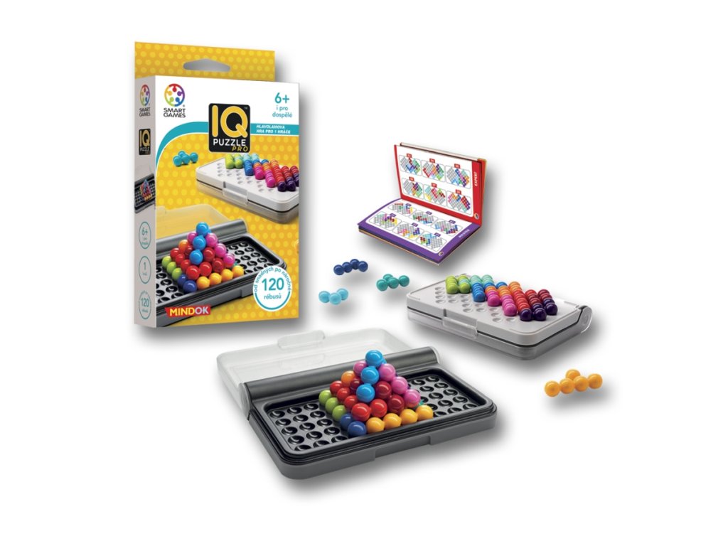 Otestujte a posilte své IQ s touto skvělou cestovní hrou! Nová hra IQ Puzzle Pro z řady Smart Games obsahuje 120 rébusů ve třech herních módech, ve 2D i 3D. Horní část krabičky obsahuje jednu herní desku pro 2D rébusy a speciální desku pro 3D rébusy - pyramidu. Spodní část krabičky přináší další tvar desky pro 2D rébusy. A to vše v malé kompaktní krabičce, ideální na cesty! 15 minut, 1 hráč, Věk 6+Doplňkové parametry