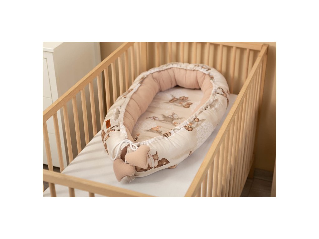 Hnízdečko, kokon pro miminko mušelín, Zábava v lese, béžové