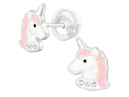 Dětské stříbrné náušničky Jednorožci premium, puzetové silikon
