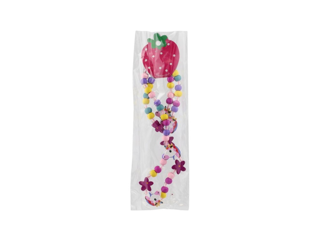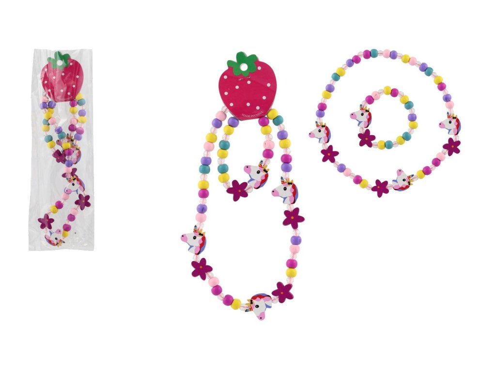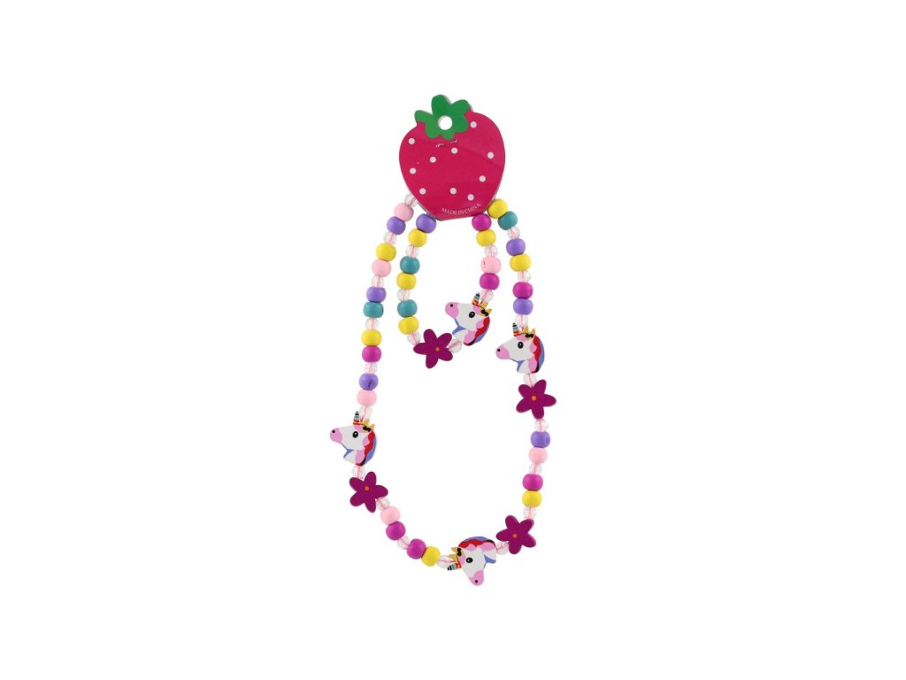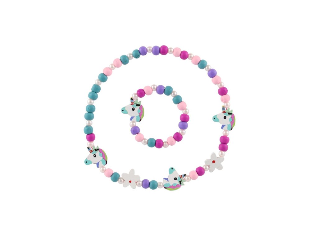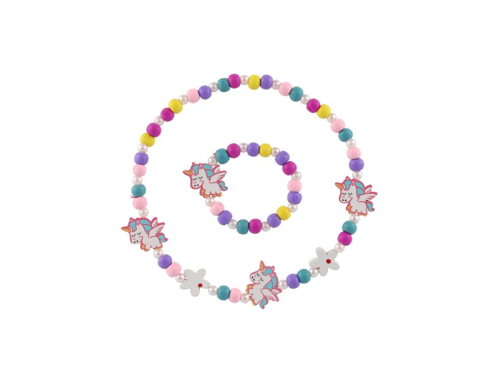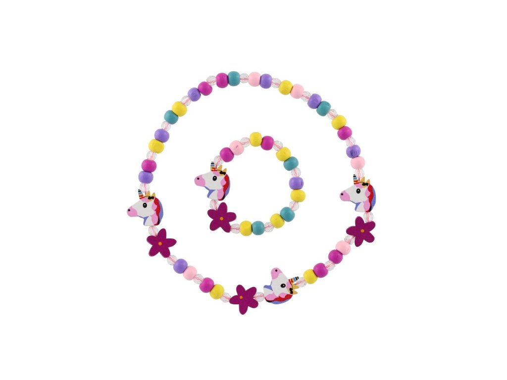 Náhrdelník a náramek korálky jednorožec dřevo/plast 20cm v sáčku