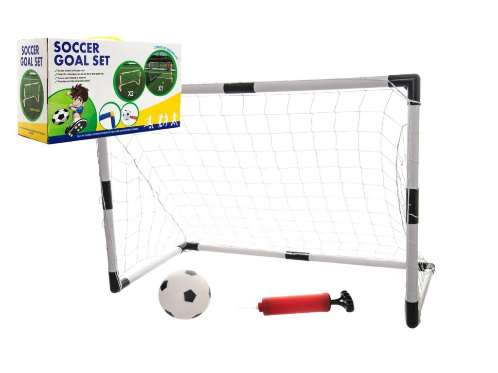 Sportovní sada na fotbal pro všechny malé fotbalisty! Spousta zábavy na zahradu. Postav branku, natáhni síť, nafoukej míč a zápas může začít. Je možné sestavit 1 velkou branku nebo 2 branky menší,v balení jsou 3 sítě.Velikosti branek: