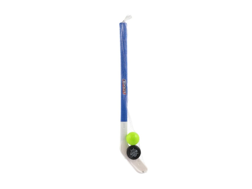 Hokejka plast 73cm s pukem a míčkem 2 barvy v síťce