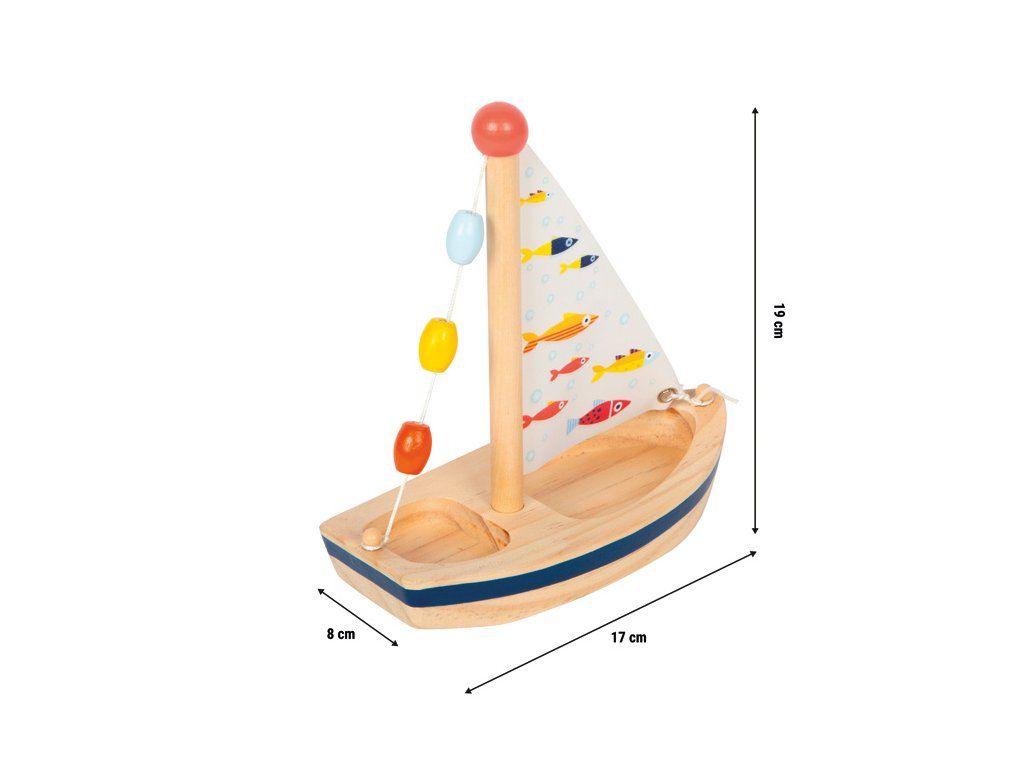 Tato dřevěná plachetnice zve děti do světa dobrodružných námořních her. Díky své praktické velikosti je ideálním společníkem pro vodní radovánky – ať už doma ve vaně, nebo na letním výletě k vodě. Jako dřevěná hračka podporuje udržitelný způsob hraní a představuje skvělou alternativu k plastovým lodím. Plachta s roztomilými ilustracemi rybiček, malé dřevěné korálky jako dekorativní prvek, dostatek prostoru na palubě pro figurky a pevné zpracování dělají z této lodi odolnou a zároveň stylovou hračku. Tato ekologická vodní hračka je malá, lehká a ideální na cesty. Po každém použití ji stačí důkladně osušit – a může znovu vyplout na další dobrodružnou plavbu. Skvělý tip na dárek pro všechny malé milovníky vody.
