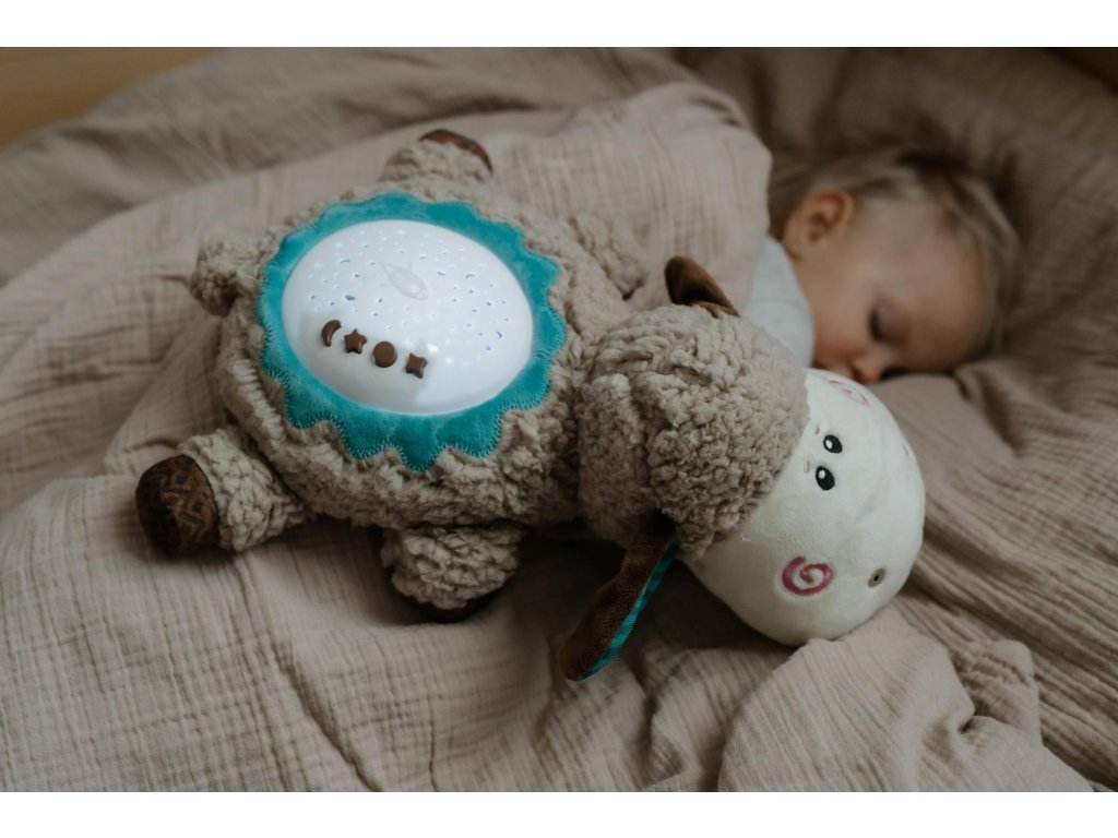Měkoučká plyšová ovečka s projektorem je ideální společník pro klidné usínání miminek i batolat. Po zapnutí začne jemně svítit a promítat uklidňující hvězdičky na strop, zatímco přehrává příjemné melodie nebo tlumené zvuky přírody. Hebký plyš v kombinaci s hladkým plastem je příjemný na dotek a bezpečný pro nejmenší děti. Ovečka podporuje usínání, zklidňuje a vytváří příjemnou atmosféru v pokojíčku. Ideální jako dárek k narození či na dobrou noc.Velikost hračky: 35 cm × 22 cm