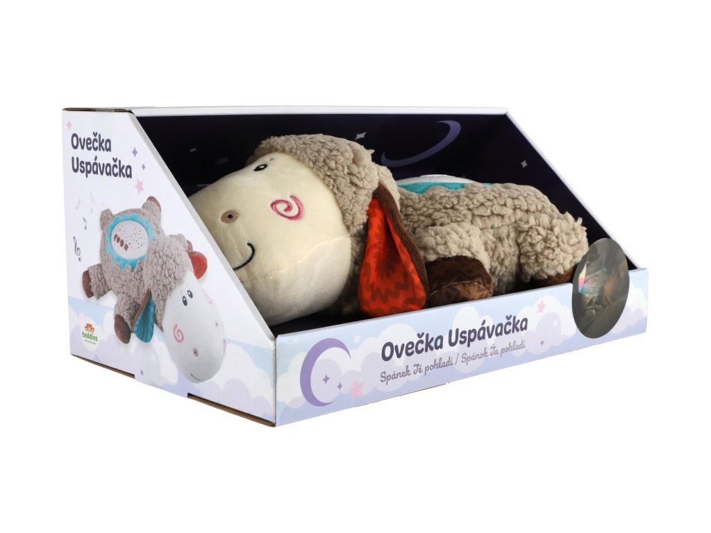 Ovečka uspávačka/usínáček projektor plyš/plast 35x22cm na baterie se zvukem,světlem v krabici 6m+