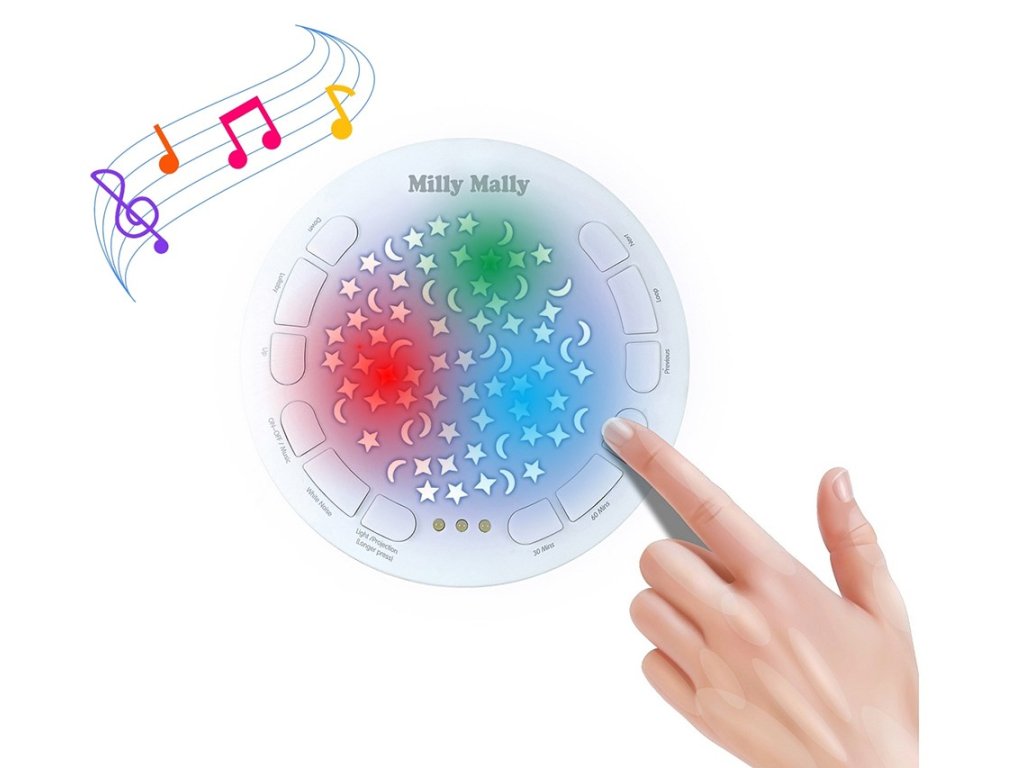 Můžete nastavit vhodnou dobu trvání: 30, 60, 90 minut. K dispozici je 5 úrovní hlasitosti. Skvělým doplňkem jeho funkce je 5 druhů bílého šumu, který má na batole obzvláště uklidňující účinek umožňující mu zklidnit se a rychleji usnout. S touto hračkou uslyšíte jemné zvuky: zurčení vody se zvuky ptáků, tlukot srdce, kapání vody, zpěv ptáků nebo padající déšť.