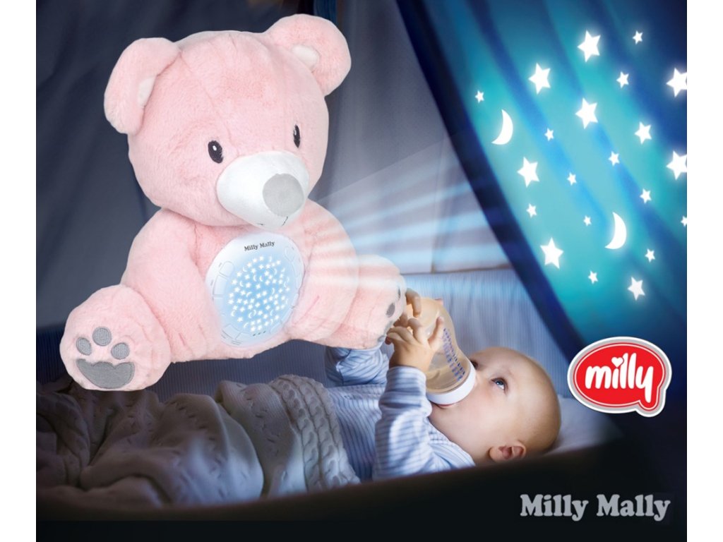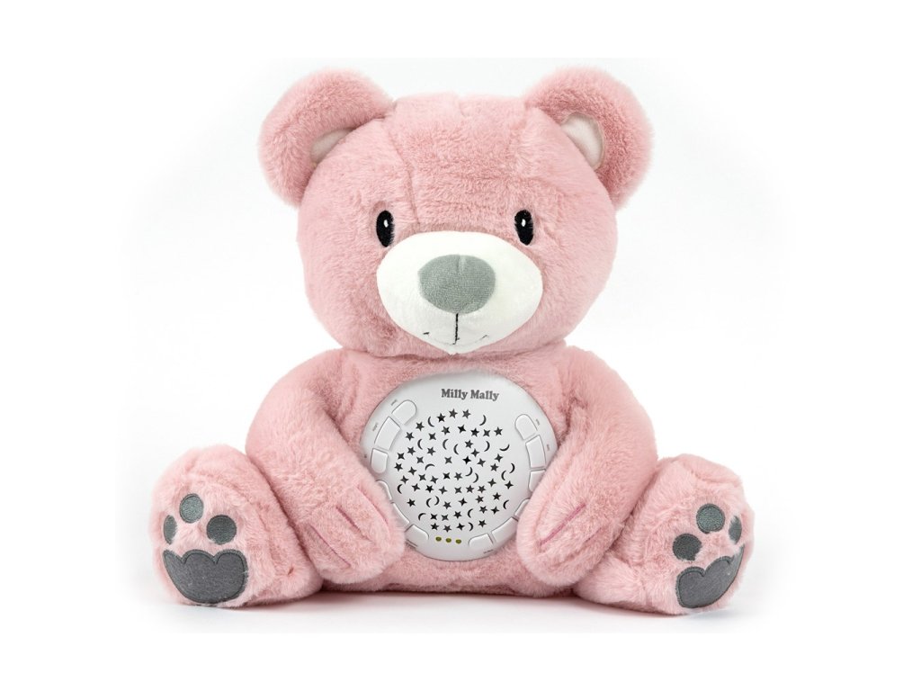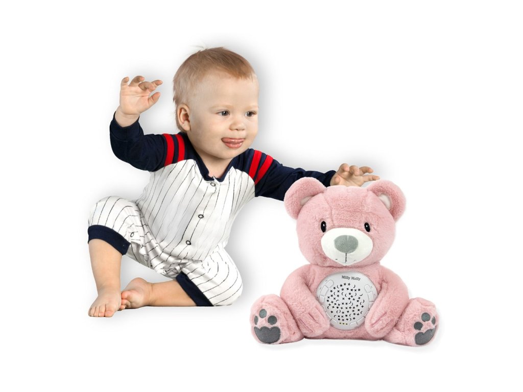Plyšový usínáček medvídek s projektorem Milly Mally Bear pink