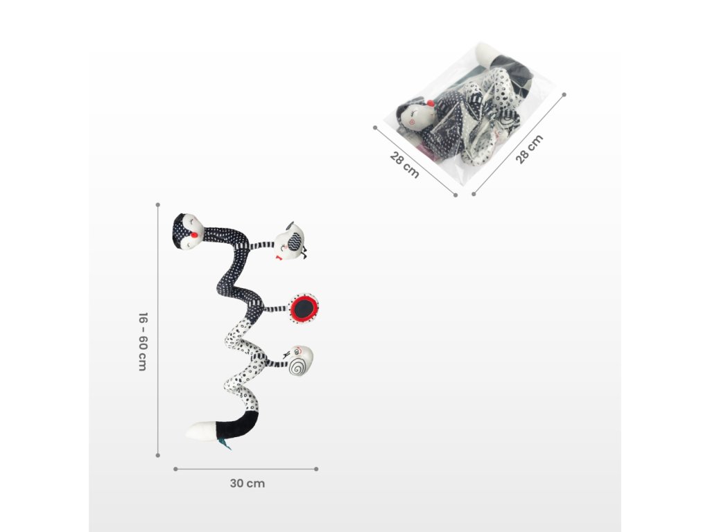 Měkká a na dotek příjemná textilie v kombinaci s různými texturami dělá z této spirály ideální doplněk do výbavičky pro vaše dítě.