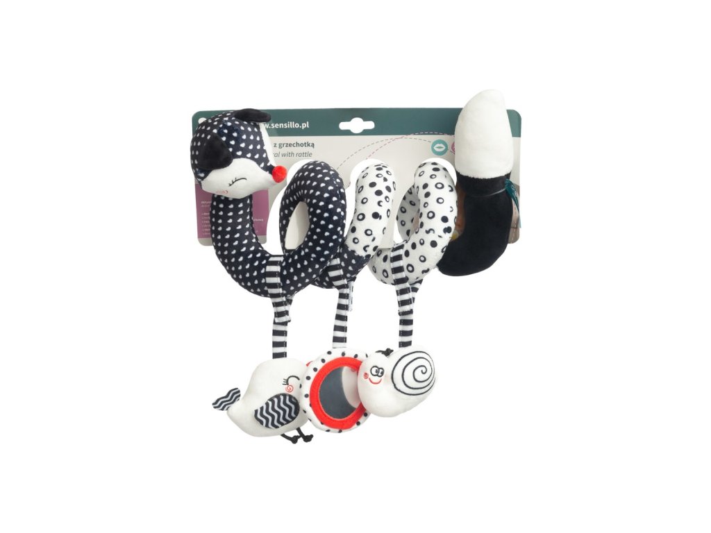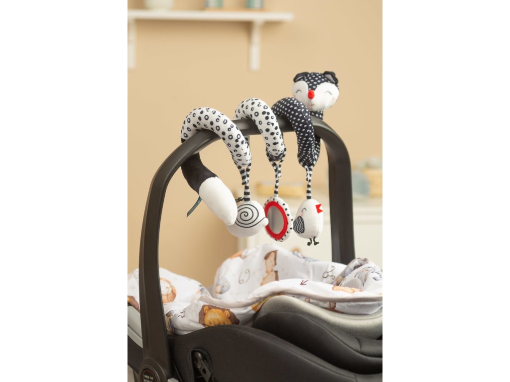 Spirála je vybavena 3 visícími senzorickými hračkami, které vaše miminko zabaví a rozzáří jeho den. Kontrastní barvy a interaktivní prvky stimulují smysly a přispívají k rozvoji motorických schopností.
