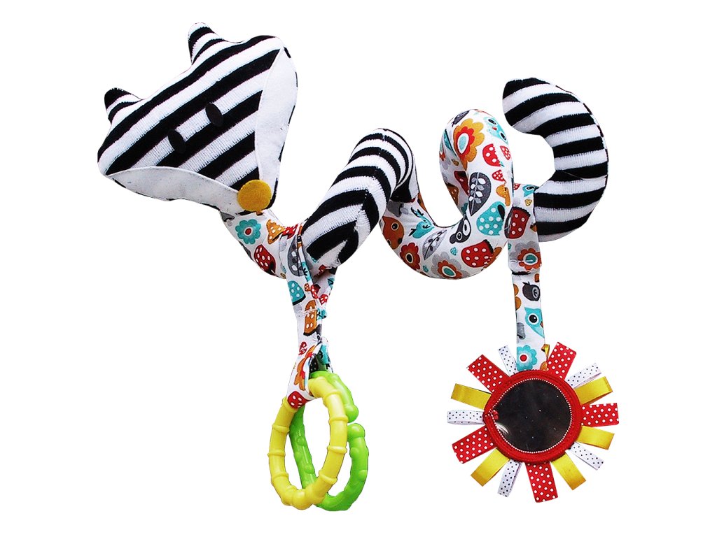 Hencz Toys Edukační hračka Hencz s chrastítkem a zrcátkem - LIŠKA - spirálka -bílo-černá