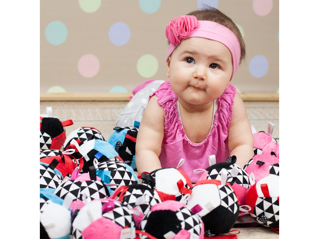 V hračce je všité chrastítko - balónek chrastí.