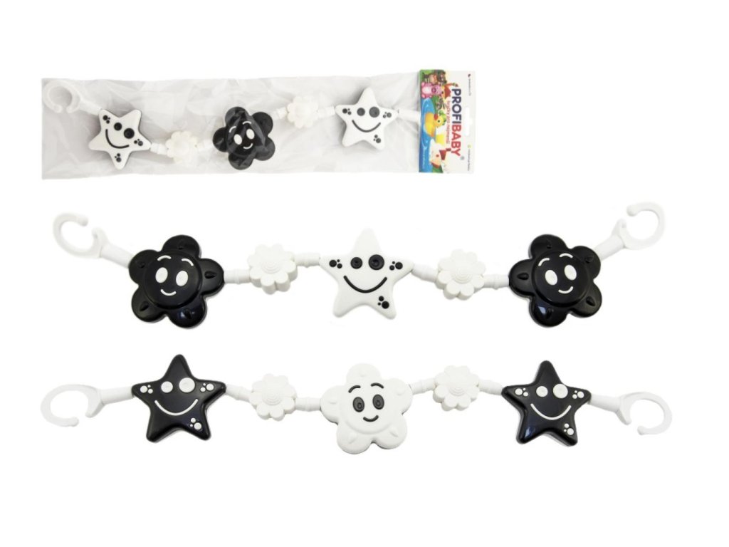 Řetěz/zábrana kytička, hvězdička plast 45 cm černobílá v sáčku 0+ (1 ks)