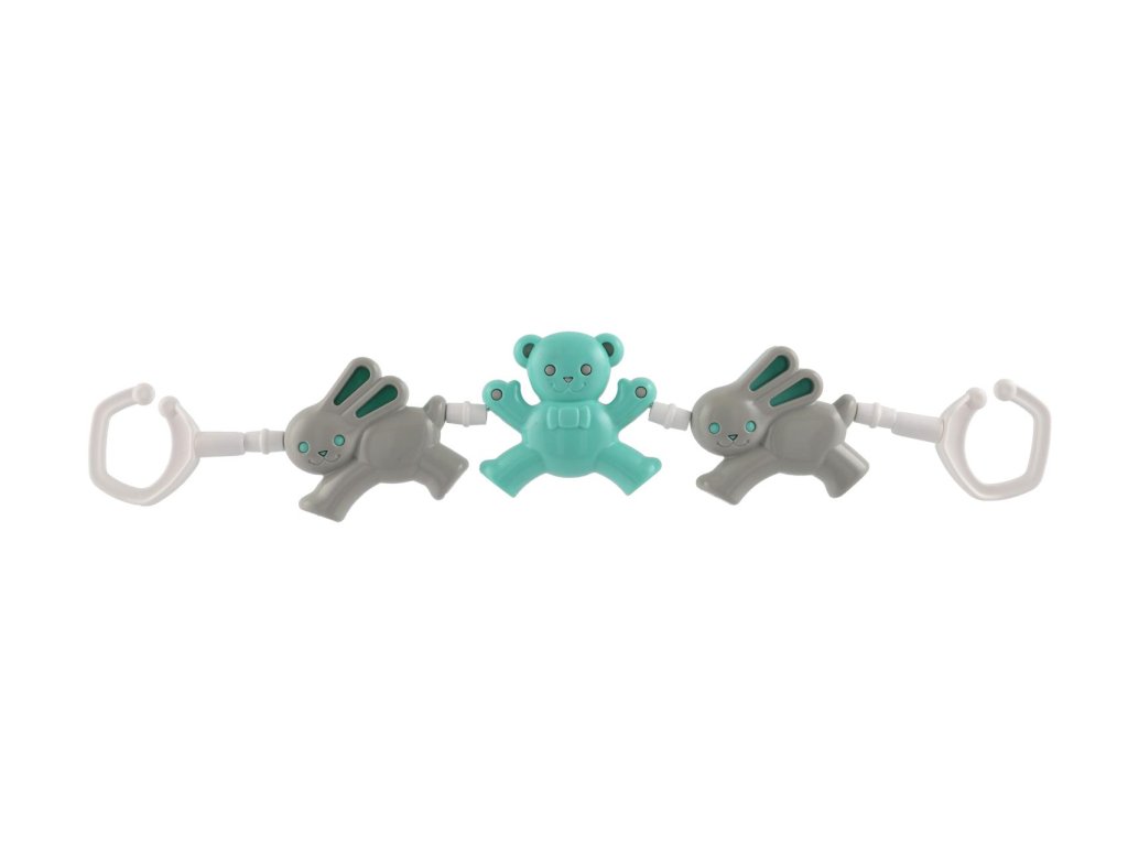 Plastový řetěz na kočárek se zvířátky zabaví děti při jízdě v kočárku. Různé tvary a materiály rozvíjí jemnou motoriku, veselé barvy rozvíjí dětské smysly.Doplňkové parametry
