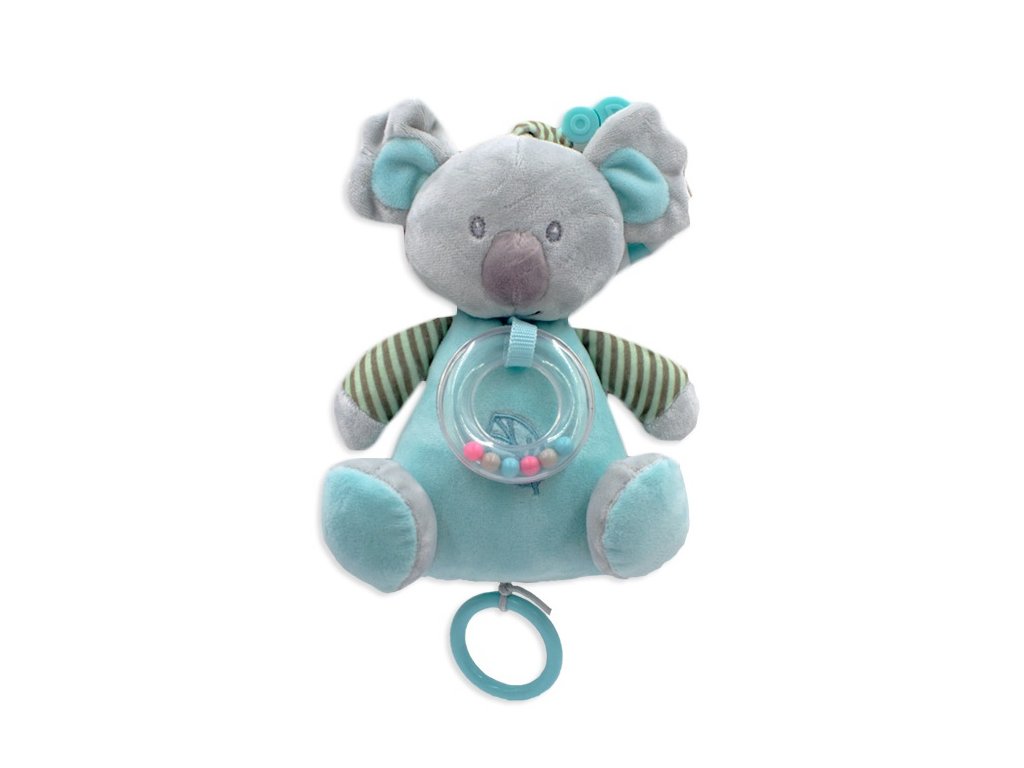 Závěsná plyšová hračka s chrastítkem Koala 18 cm - šedá/mátová