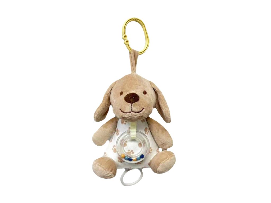 Závěsná plyšová hračka s chrastítkem Pejsek, 18 cm, béžový