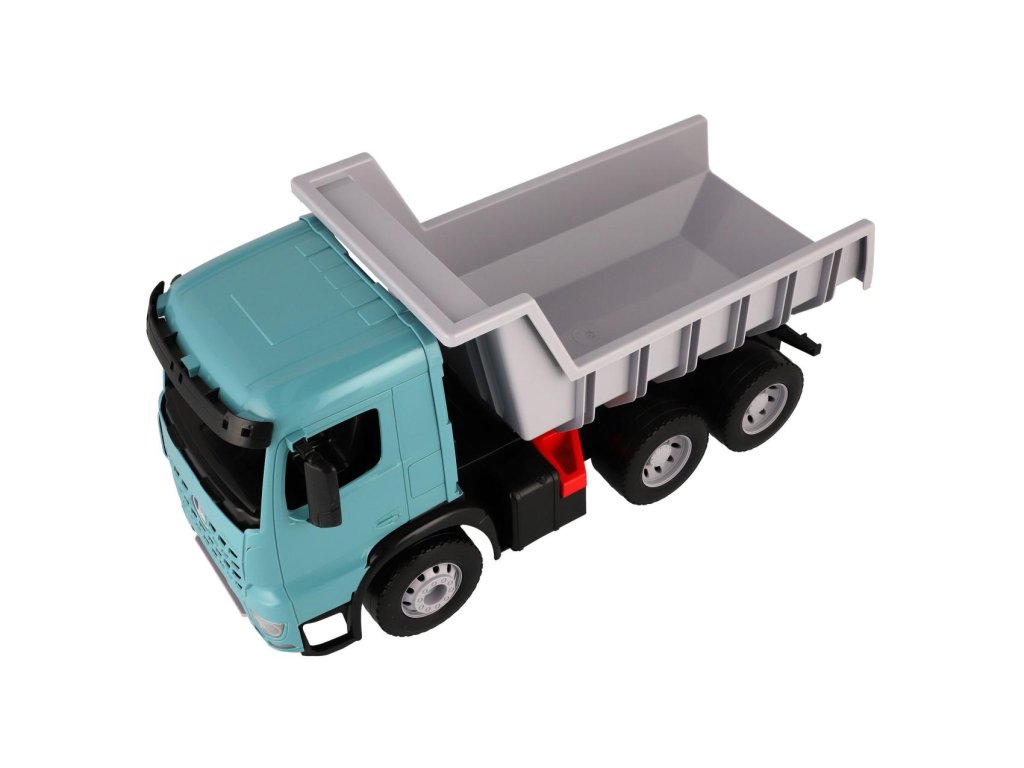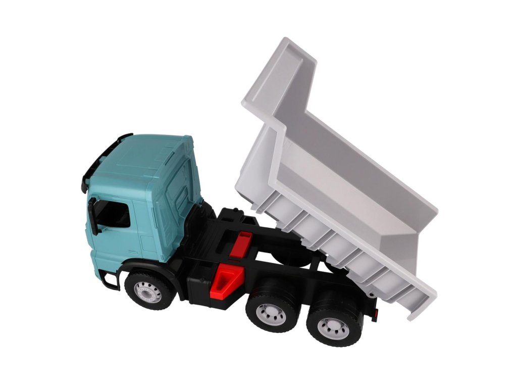 Robustní plastové auto s prostornou korbou, ideální pro přepravu velkého a těžkého nákladu při každé dětské misi. Korba je opatřena praktickou pojistkou proti samovolnému vyklopení. Kombinace šedé a tyrkysové barvy dodává autu moderní a hravý vzhled. Baleno v okrasném kartónu.