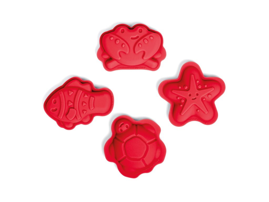 Vytvářejte jedinečné pískové výtvory se sadou čtyř 100% silikonových pískových forem. Se silikonovými formičkami si děti užijí dlouhé hodiny zábavy. Pomocí formiček ozdobte hrad z písku, vytvořte malbu v písku s podmořskou tématikou, nebo jen tak nabírejte písek a mnoho dalšího. Když hrací čas skončí, formičky lze uložit do přiloženého bavlněného pytlíku pro bezpečné a snadné skladování. Sada obsahuje čtyři formičky: hvězdici, kraba, rybu a želvu.