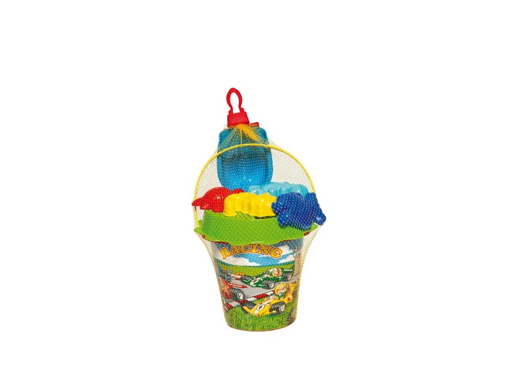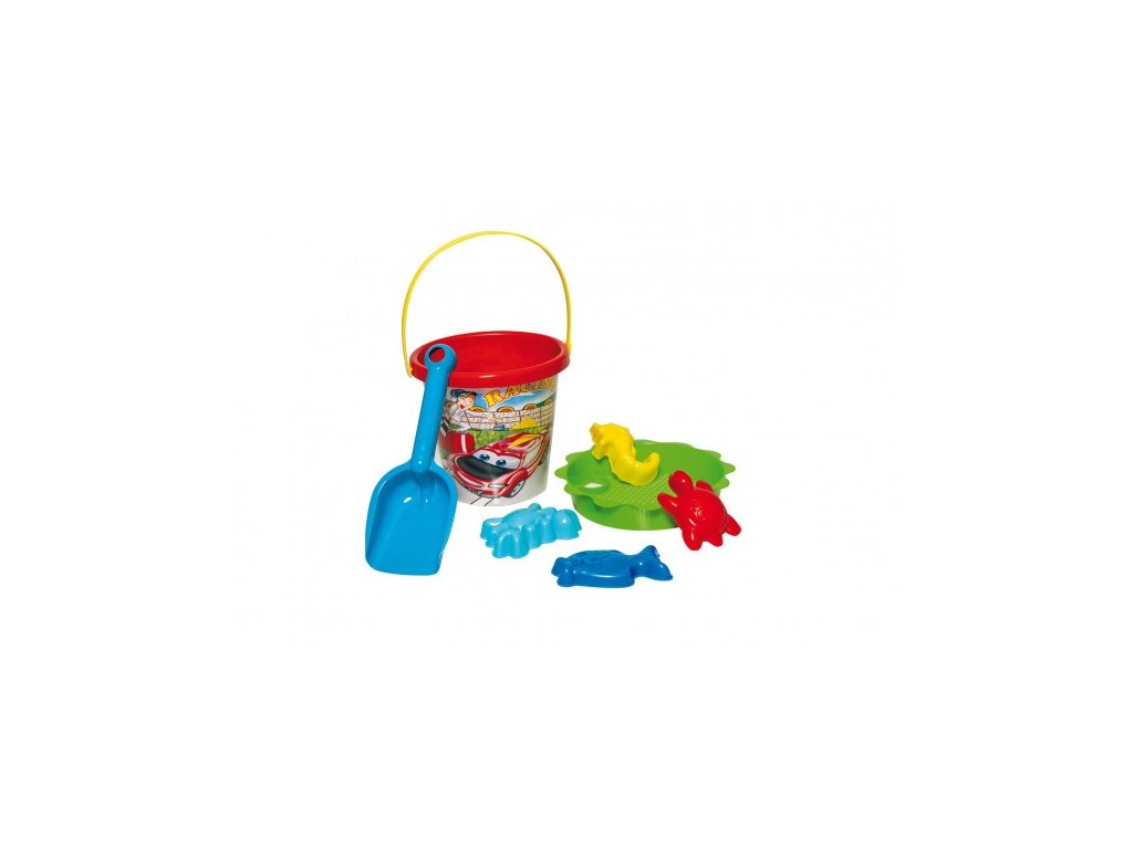 Sada na písek 7 ks plast kbelík, sítko, lopatka, 4 formičky (3 barvy) 18m+