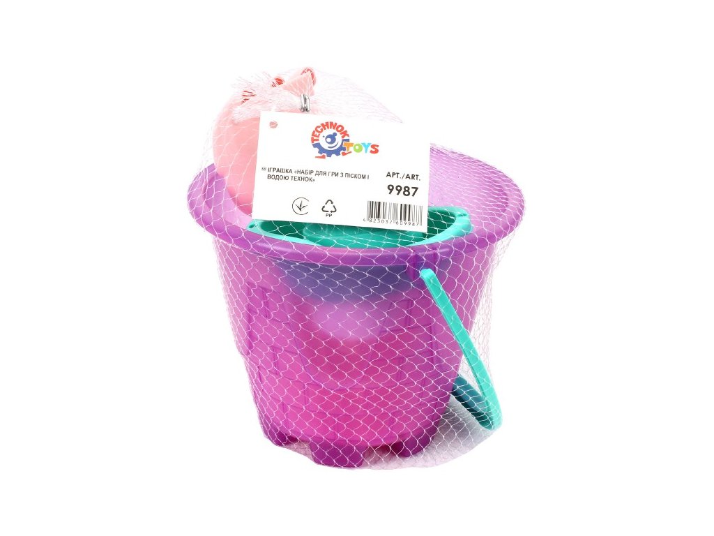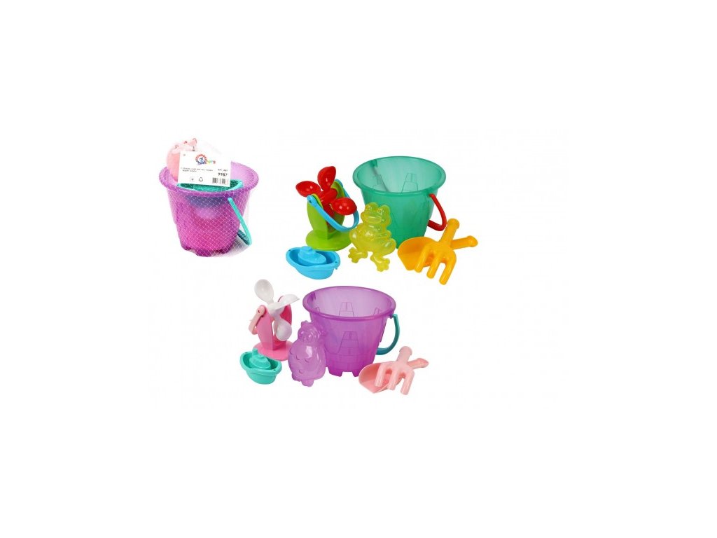 Sada na písek a k vodě plast kbelík, mlýnek s doplňky v síťce 20x19 cm