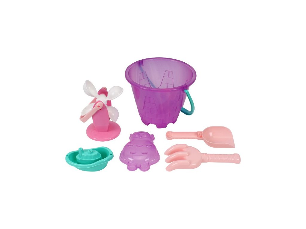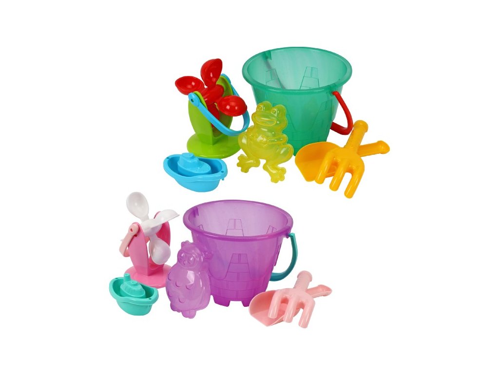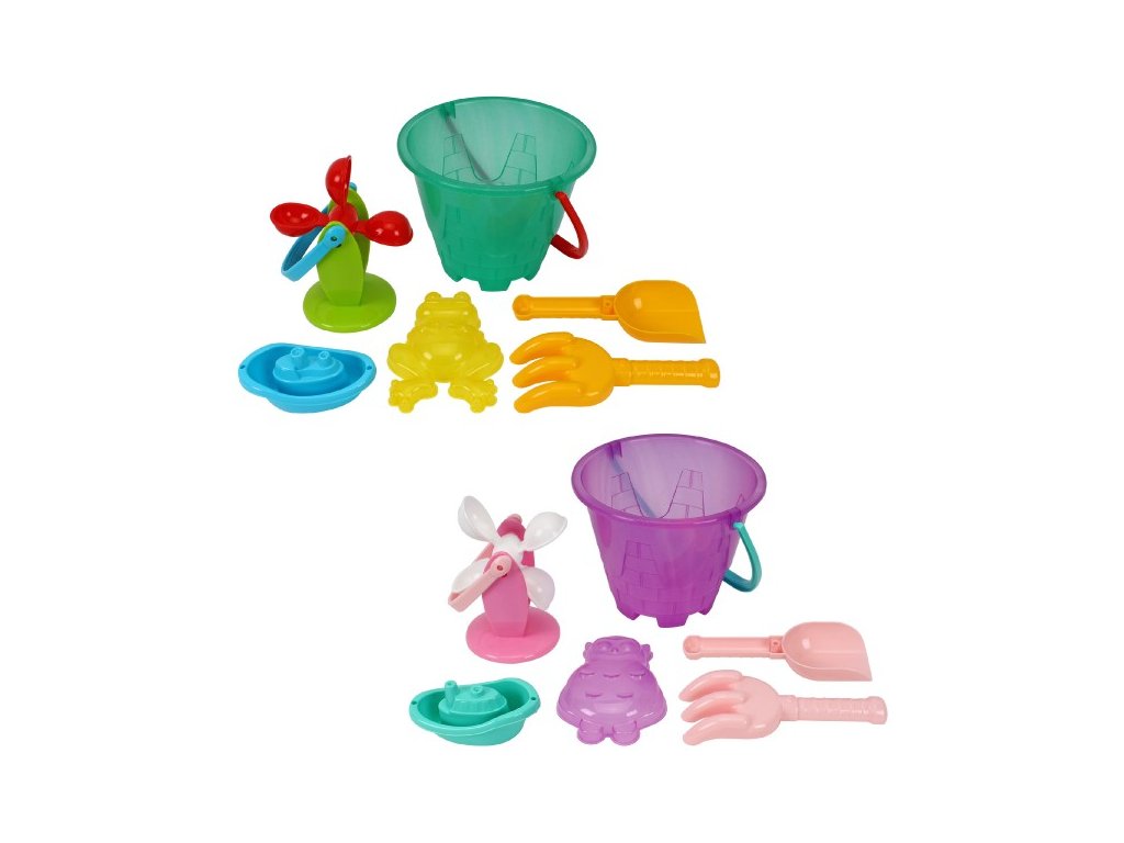 Tato veselá plastová sada na písek a vodu je ideálním společníkem pro letní hry na pláži, zahradě nebo u bazénu. Díky mlýnku se děti mohou učit principy pohybu vody a písku zábavnou formou. Kbelík a praktické náčiní jsou navrženy pro dětské ruce a podporují rozvoj jemné motoriky a tvořivosti.