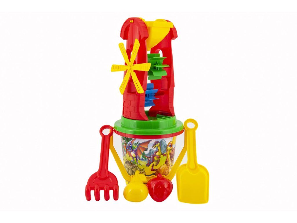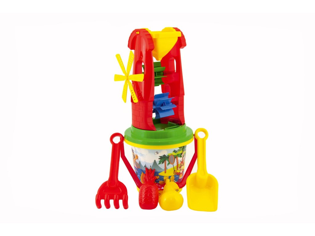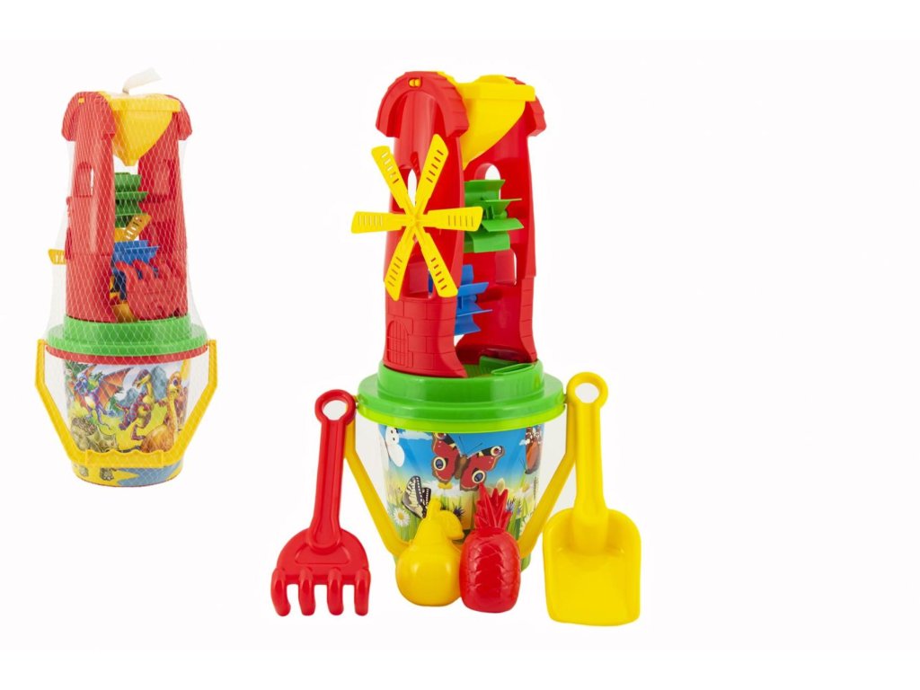 Hurá na pískoviště! Aby na něm byla dobrá zábava, nesmí tam chybět hračky na písek, které patří nepochybně mezi nejoblíbenější venkovní hračky. Sada obsahuje kyblíček, sítko, mlýnek, hrabičky, lopatku a formičky. Sada na písek je vyrobena z kvalitního a odolného plastu. Baleno v síťce.Rozměry balení 20 x 42 x 19 cm.