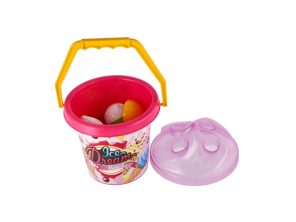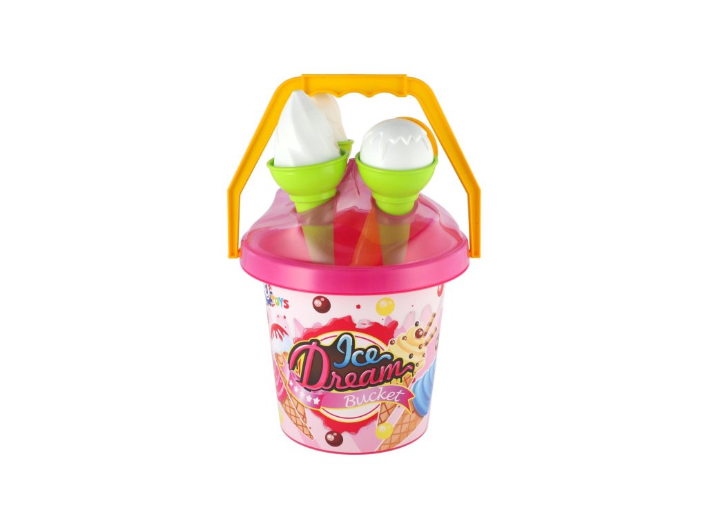 Sada na písek plast kbelík + formičky zmrzlina 2 barvy v síťce 18x28x17cm 12m+