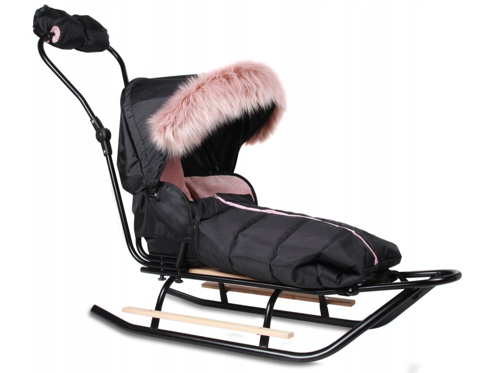 Sáňky DELUX s kompletním vybavením + rukávník zdarma - černý,růžový