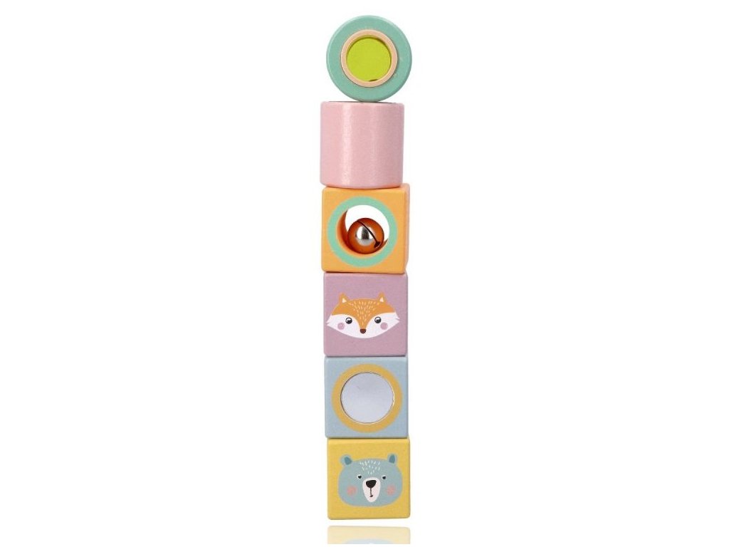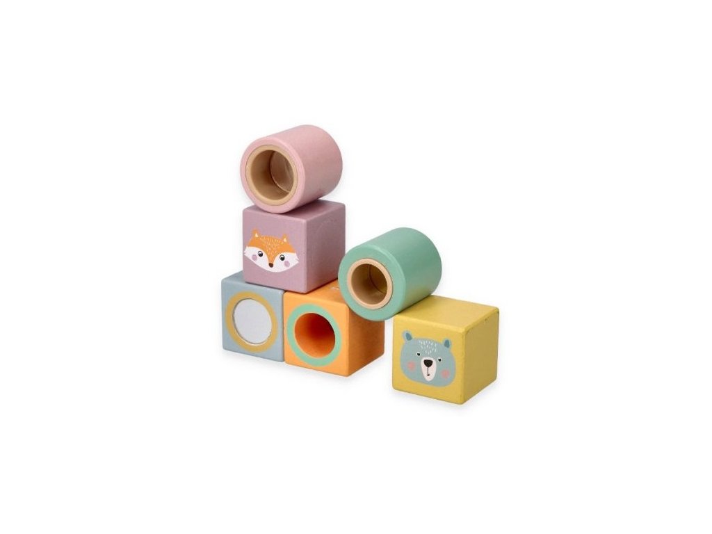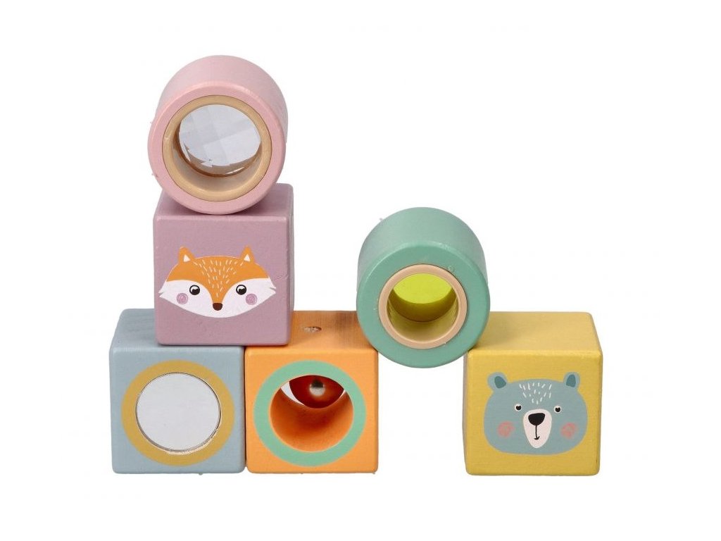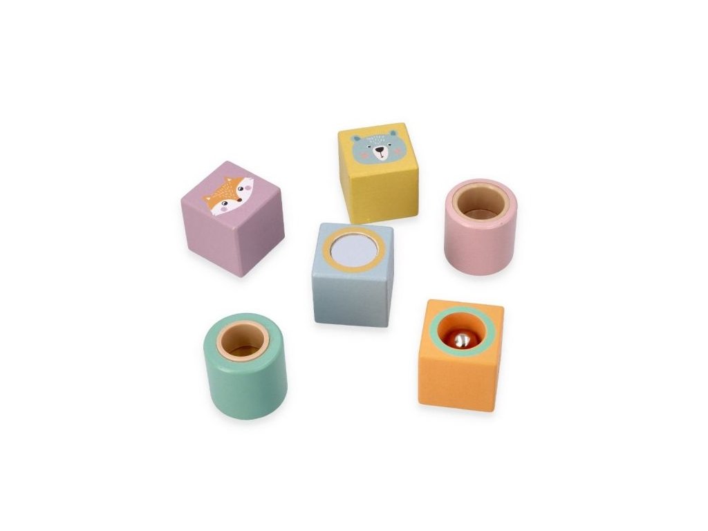 Barevné, dřevěné kostičky s rolničkou Zvířatka.Barevné kostky pro malé průzkumníky jsou dokonalou hračkou pro malé děti objevující svět.