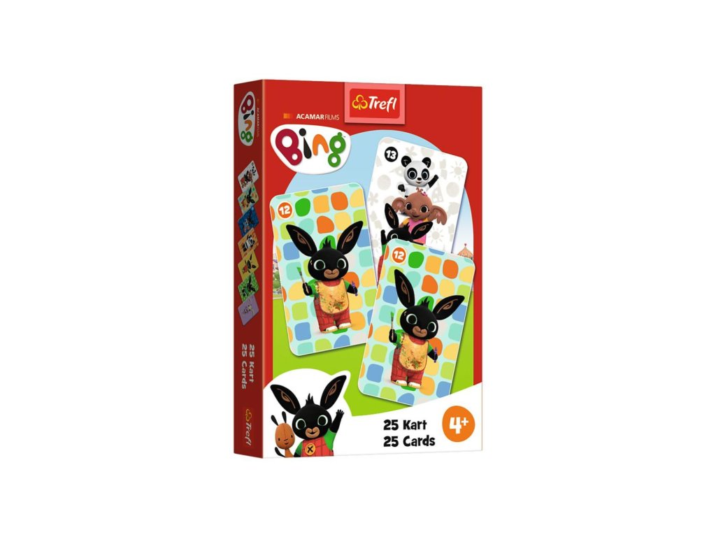 Kdo se zbaví všech svých karet se stejným označením a komu na konci hry zůstane v ruce Černý Petr? Hrou Vás bude doprovázet Králíček Bing.Karty: 25 karet - 12 dvojic označených stejnou číslovkou + 1 Černý Petr