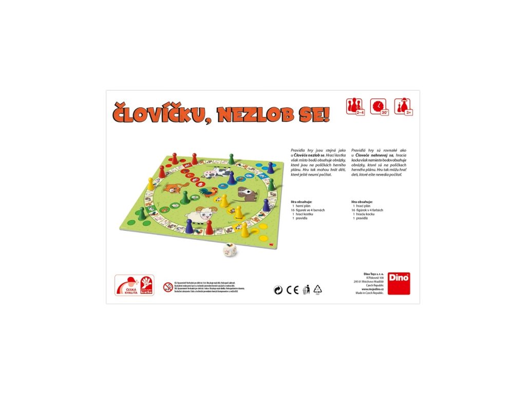 Klasická hra v provedení ideálním pro nejmenší děti. Umíte se nezlobit? Ukažte to i svým ratolestem. Obrázková kostka Vám bude ukazovat, kam se posunout po herním plánu, abyste dostali všechny figurky do domečku. Hrou si děti osvojují základy taktiky, učí se vyrovnávat s dílem náhody a když budou chtít, mohou zkoušet i první počty.