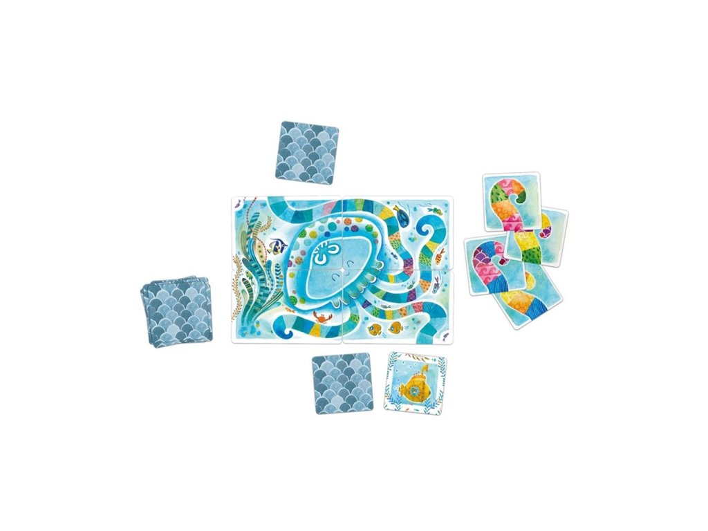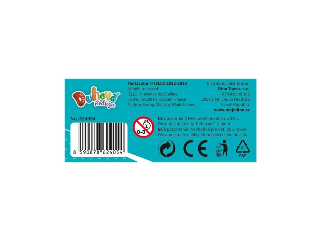 Vstupte do podmořského dobrodružství s logickou hrou, která Vás okamžitě zaujme! Ponořte se do hlubin oceánu a vydejte se na hledání úchvatné duhové medúzy. Avšak pozor! Abyste ji zachytili, budete muset prokázat šikovnost a strategii, protože jen jeden z Vás dokáže vytvořit barevné chapadlo tohoto ohromujícího stvoření. Hra nabízí nejen zábavu, ale je i vzdělávací. Je vhodná už od nízkého věku a díky barevným kartám s chapadly se děti učí rozpoznávat barvy a správně je pojmenovat. Obsah balení: 65 karet chapadel4 karty medúzypravidla hry Hlavní vlastnosti: zábavná hra pro 2 až 4 hráčevyrobeno v ČR Zkrácený návod ke hře Doprostřed stolu sestavte tělo medúzy společné pro všechny hráče. K tělu medúzy rozložte 4 karty konečků chapadel (použijí se na konci hry) a dobírací balíček karet chapadel. Hráč, který začíná hru, obdrží kartu určující barvu jeho chapadla. Každý hráč obdrží 1 kartu z dobíracího balíčku a vybere si na těle medúzy, které chapadlo bude tvořit. Kdo je na tahu, vezme si kartu z dobíracího balíčku a z karet, které má v ruce, přiloží jednu k chapadlu a druhou předá dalšímu hráči. Kdo jako první poskládá chapadlo, ve kterém je 5 karet, které obsahují stejnou barvu, vyhrává a chapadlo dokončí kartou vybraného konečku.Doplňkové parametry
