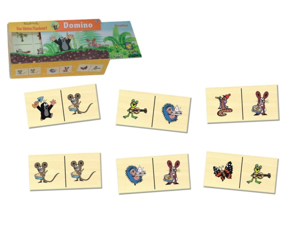 Domino Krtek dřevo společenská hra 28 dílků v dřevěné krabičce 18x11x5cm