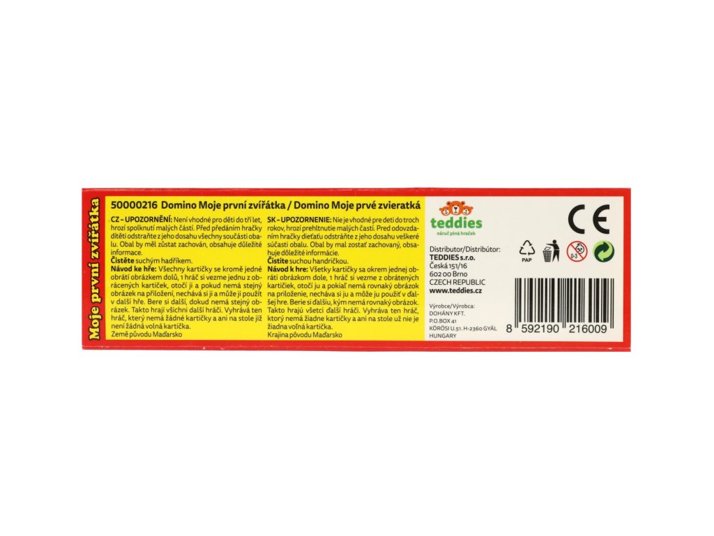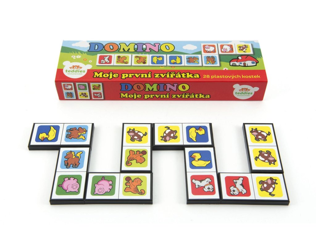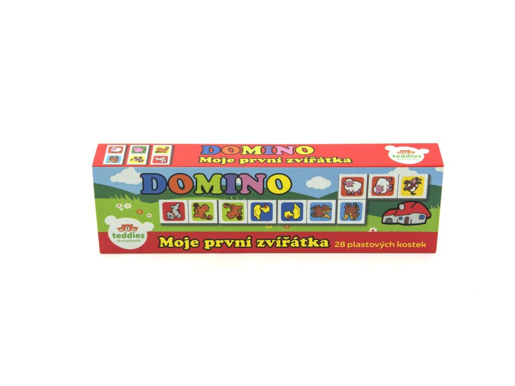Klasická hra domino se zvířátky určená pro děti, kterým ještě nejde počítání.Obsahuje: 28 plastových kartiček, v krabičce 21 x 6 x 3 cm.