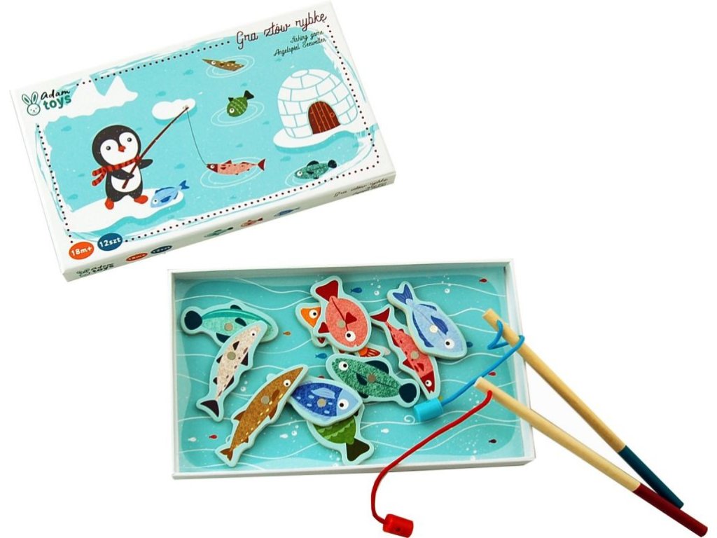 Dřevěná hra Tučňák na rybách.Užijte si spoustu zábavy s chytáním rybiček.
