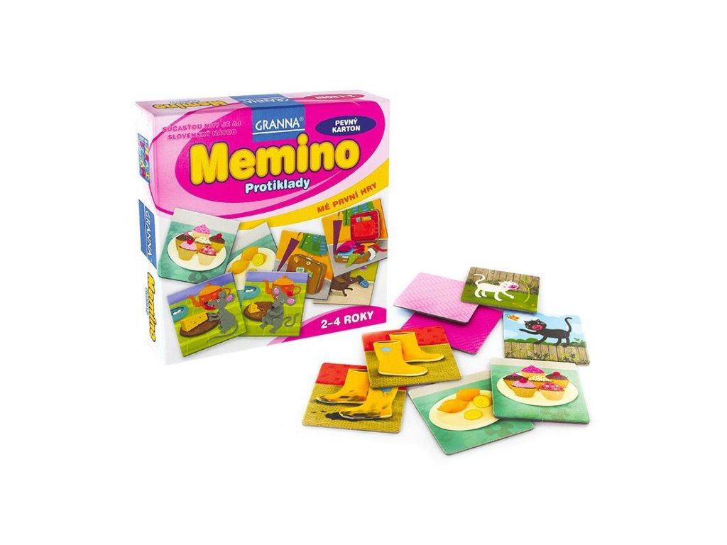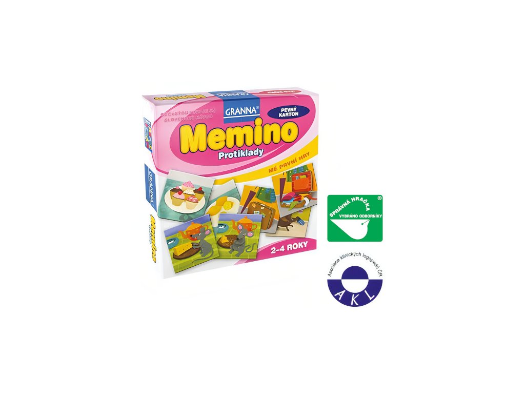 Pozoruji svět, který je plný protikladů. Jednou se směju, jindy pláču. Venku je teplo, nebo chladno. Citron je STRAŠNĚ kyselý, zákusky jsou MOC sladké. A co je opakem medvěda, který spí? Už vím! Na kartičkách hry založené na principu pexesa je vyobrazeno 12 protikladů, např. černá kočka – bílá kočka, léto – zima apod. Úkolem dětí je nasbírat co největší počet protikladů. Oceněno titulem „Správná hračka“. Doporučováno Asociací klinických logopedů ČR. Může hrát i jedno dítě! Jedinečná hra ze série MÉ PRVNÍ HRY je určena pro 1 až 4 děti od 2 do 4 let. Je založena na principu pexesa, na obrázcích vyrobených z odolného pevného kartonu jsou však vždy dvojice protikladů. Pravidla nabízejí variantu pro jedno i více dětí, které si při hře nejen rozvíjejí své logické myšlení a pozorovací schopnosti, ale procvičí si i postřeh a rychlé rozhodování. Hra, která obdržela od odborníků titul „Správná hračka“, umožní rodičům strávit s dětmi příjemné okamžiky a při společné zábavě hravou formou podpořit jejich všestranný rozvoj. Pravidla totiž lze upravit např. tak, že nejmenší děti nebo začátečníci mají všechny kartičky otočené obrázkem k sobě a pouze je párují; starší či pokročilejší hráči už mají polovinu karet otočenou obrázkem dolů a začínají trénovat i paměť. Hra tak s dětmi „roste“ a přizpůsobuje se rozvoji jejich schopností. Obsah balení: 24 čtvercových kartiček s obrázky protikladůčeský a slovenský návod Hlavní vlastnosti: rozvíjí slovní zásobu procvičuje koordinaci oko–rukarozvíjí pozorovací schopnosti i paměťdoporučováno Asociací klinických logopedů ČR Dokumentace: návod ke hře CZ návod ke hře SK Označení „Správná hračka“ je udělováno produktům, které cílí na děti předškolního věku a vynikají zejména výchovnými kvalitami, ale i vysokým standardem zpracování, komfortem používání a estetickou úrovní. Záměrem tvůrců ocenění je poskytovat vodítko a oslovovat rodiče i pedagogy, kteří chtějí ovlivňovat směřování nabídky a za prvořadý považují zdravý osobnostní rozvoj dětí. Tím chtějí tvůrci podněcovat k rozšiřování a vývoji nových hodnotných hraček či her. Označení je udělováno od roku 1994 a je společným projektem Sdružení pro hračku a hru, Asociace hračka Unie výtvarných umělců ČR a Asociace předškolní výchovy. Tato sdružení společně s Uměleckoprůmyslovým muzeem v Praze a Městským muzeem v Kamenici nad Lipou udělují ocenění při příležitosti festivalu Hračkobraní konajícího se každoročně od roku 2006 na zámku v Kamenici nad Lipou, kde můžete mimo jiné zhlédnout stálou expozici všech oceněných hraček.Doplňkové parametry