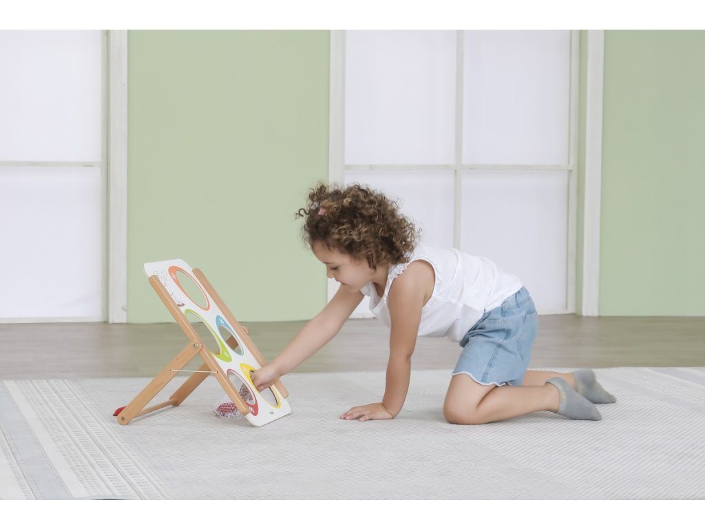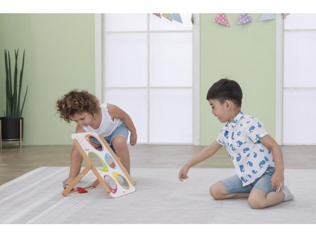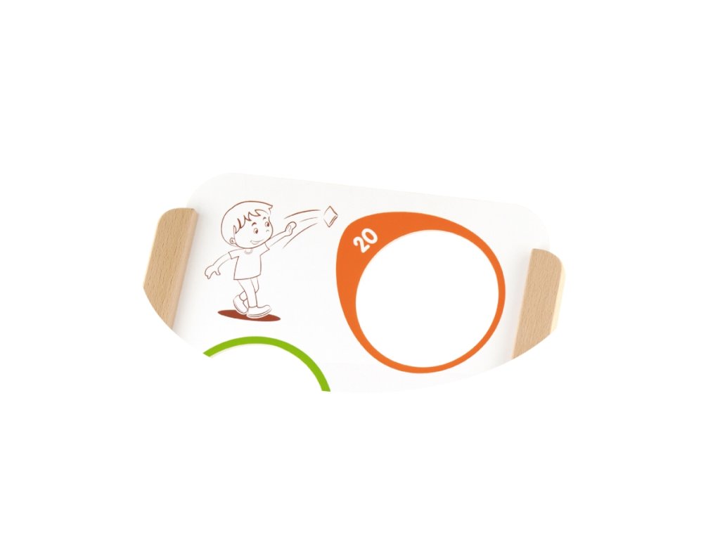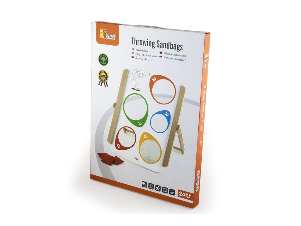 Hra házení pytlíků s pískem do otvorů, za každý otvor je určitý počet bodů. Rozměry hračky cca 35 x 46 cm. Rozměry balení cca 36 x 49 x 3,5 cm. Věk 2+Doplňkové parametry
