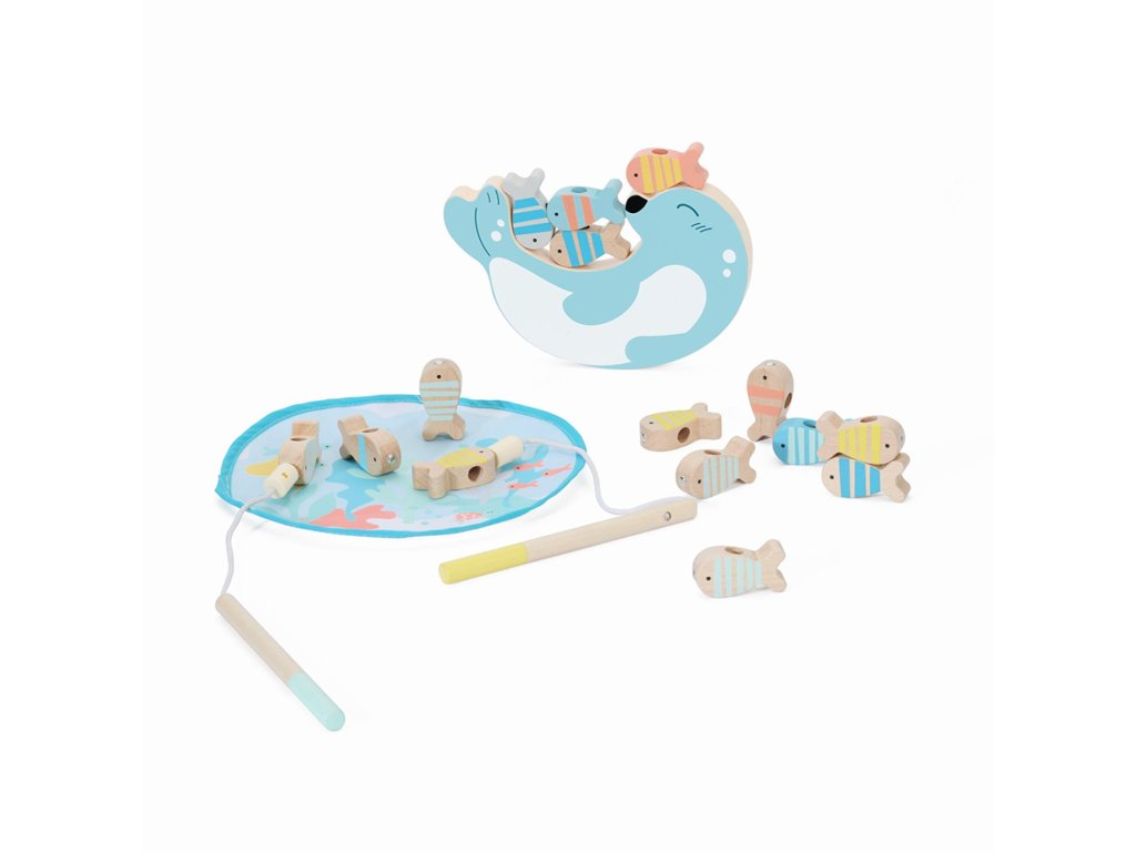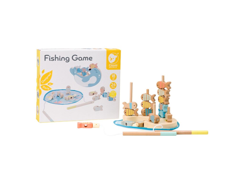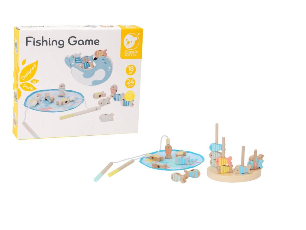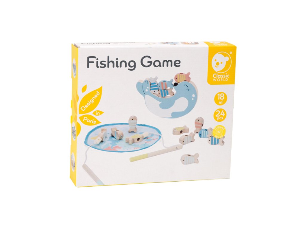 Oblíbená dětská hra promění holčičky i chlapce v rybáře. Rybaření na moři plném ryb a mořských živočichů, pomocí udiček s magnetem, je velkou zábavou, která zdokonaluje dětské dovednosti. Společenská hra na rybáře potrénuje motorické dovednosti, koordinaci očí a rukou, naučí děti soustředit se a trpělivosti. Součástí balení je 24 ks.Rozměr balení: 28 x 24 x 5 cm