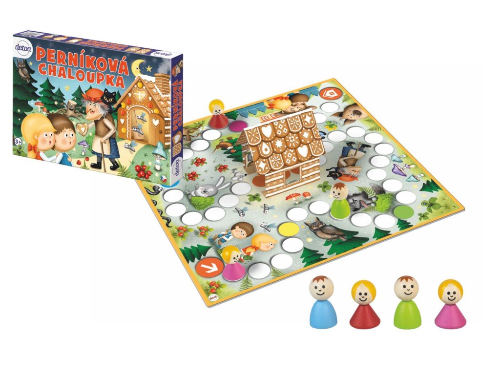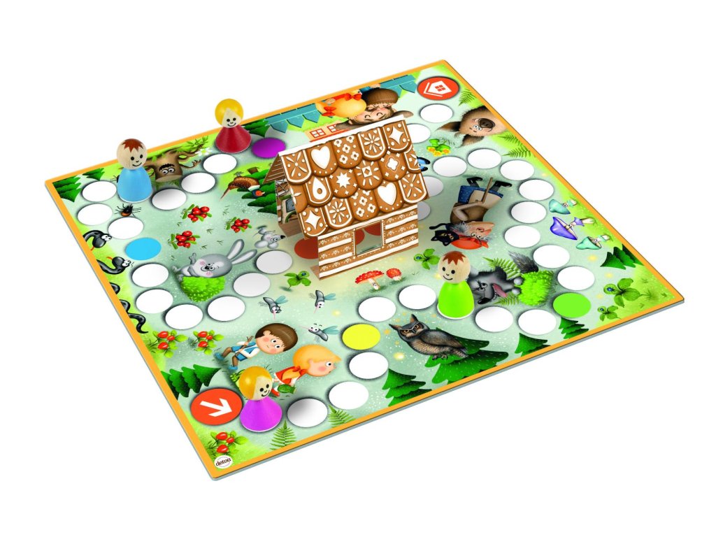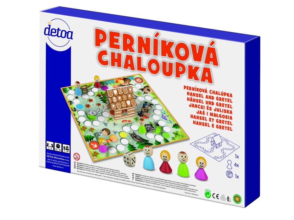 Klasická desková hra pro nejmenší hráče na motivy oblíbené pohádky o Perníkové chaloupce. Hráči se s dřevěnými figurkami pohybují po lese plném dobrodružných úkolů tak, aby se co nejdříve dostaly do cílového políčka. Cestou plní jednoduché úkoly.V krabici: 33,5 x 23 x 3,5 cm
