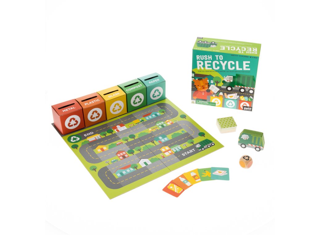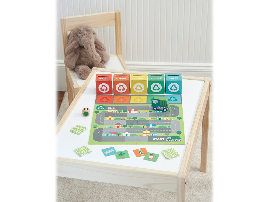 Recyklace nikdy nebyla zábavná tak, jako s touto cenami ověnčenou hrou. Kov, sklo, nebo papír? Třiďte, než si pro ně přijedou! Hrajte spolu, nebo proti sobě a rozvíjejte ekologické cítění dětí. Hra je vhodná pro děti od 4 do 8 let a lze u ní strávit průměrně 15 minut. Je vyrobena z recyklovaných materiálů potištěných nezávadnými rostlinnými inkousty. Hlavní vlastnosti:herní plán, 5 kontejnerů, kartičky, kostka a náklaďák Ocenění hračky:National Parenting Product Award 2021PureWow's Happy Kid Award 2021Oppenheim Toy Portfolio Gold Seal Award 2021Made for Mums Bronze Award 2021Doplňkové parametry