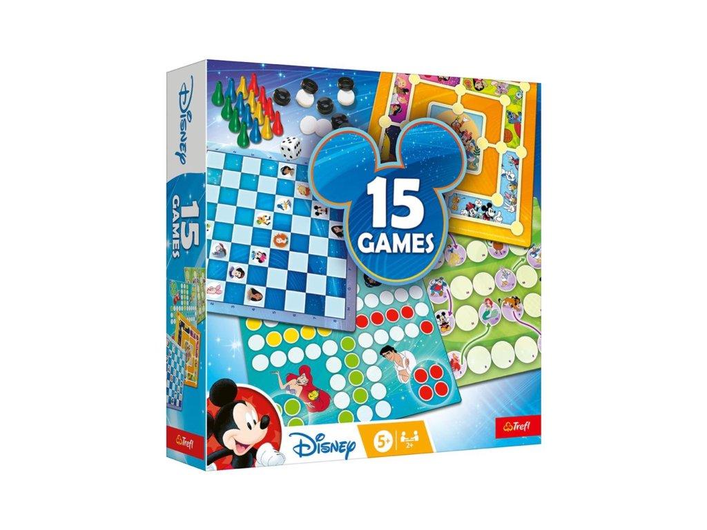 Set klasických her pro celou rodinu s oblíbenými pohádkovými postavami Disney. Sada obsahuje tradiční hry: Člověče, nezlob se!, Mlýn Hadi a žebříky, Dámu a další hry známe po celém světě. Obsah balení: oboustranné herní plány, 1 kostka, 24 kamenů, 16 barevných hracích figurek, pravidla. Pro 2 - 4 hráče.Rozměry balení: 24 x 24 x 6 cm.