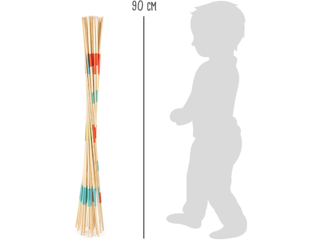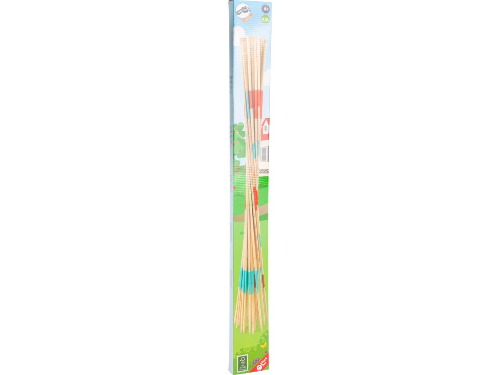 Při této hře budete muset mít pevnou ruku! XXL mikádo trénuje koordinaci ruka-oko, soustředěnost a trpělivost. Hráči musí hůlky vyrobené ze 100% certifikovaného FSC® dřeva vytáhnout z hromádky bez toho, aby pohli jinými hůlkami. Každá hůlka má proužky jiné barvy a počtu, takže má každá jinou bodovou hodnotu. Nesmrtelná klasika, kterou můžete hrát venku i doma.