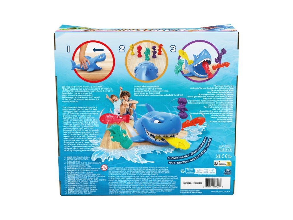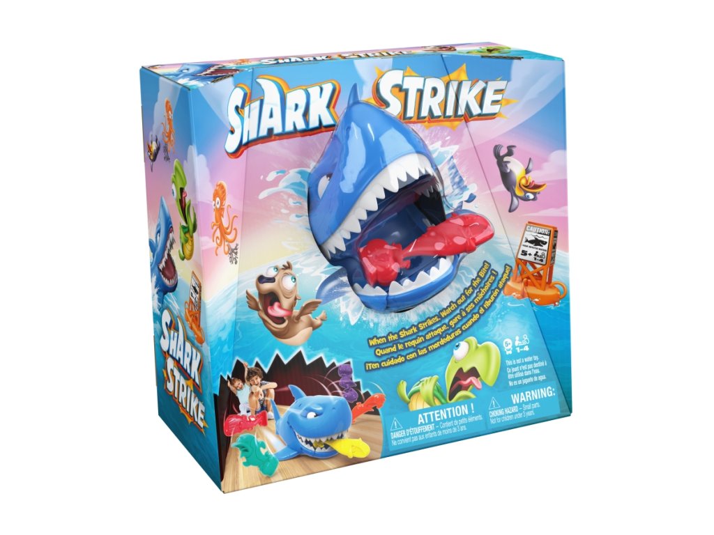 Žralok je hladový a vyráží na lov. 2 hráči nebo týmy se postaví proti sobě. Na zemi postaví své figurky rybiček. Mladší hráč začíná. Natáhne žraloka a pošle ho proti figurkám protihráče. Žralok se rozjede s otevřenou tlamou a hýbajícím ocasem a se štěstím trefí figurky protihráče, které mu pak skončí v tlamě. Hráč který protihráči sežere více figurek na 3 pokusy vyhrává. Rozměry balení 27x25x13 cm. Doporučený věk 5+Doplňkové parametry