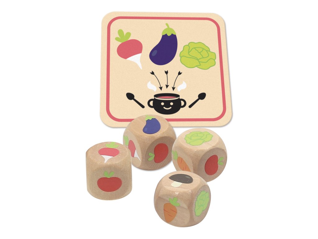 Nejen vegani si užijí tuto zábavnou zeleninovou hru! Lízněte si kartičku s receptem a pokuste se na kostkách hodit vyobrazenou kombinaci. Kdo bude mít více štěstí a shromáždí více karet? Díky jednoduchým pravidlům a obrázkům si zahrají i nejmenší, starší mohou hru okořenit i počítáním a jednotlivým druhům zeleniny přiřadit různou hodnotu. Hlavní vlastnosti: 55 hracích kartiček a 4 kostkypro 2–6 hráčůatraktivní design a zpracování Zkrácený návod hry:Cílem hry je za pomocí kostek vytvořit kombinace odpovídající kartičkám receptů. Rozdejte 3 kartičky receptů každému hráči. Hráči se na tahu střídají. Tah začíná hodem kostek. Hráči mají 3 hody za každý tah. Při prvním hodu hodí všemi třemi kostkami, při dalších pak mohou házet všemi nebo jen některými kostkami. Pokud hráč hodí kombinaci, která se shoduje s jednou z jeho kartiček receptů, tuto kartu získá. Poté si lízne kartu novou. Vítězí hráč, který jako první získá 10 kartiček receptů.Doplňkové parametry