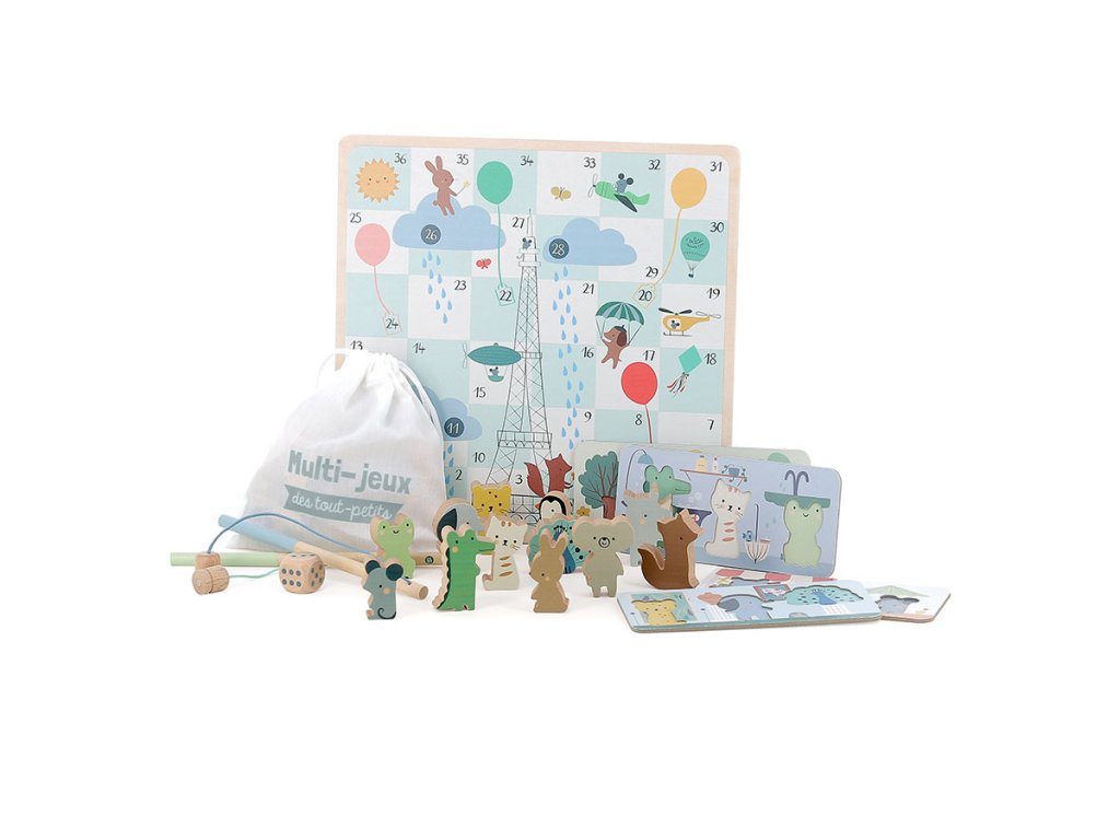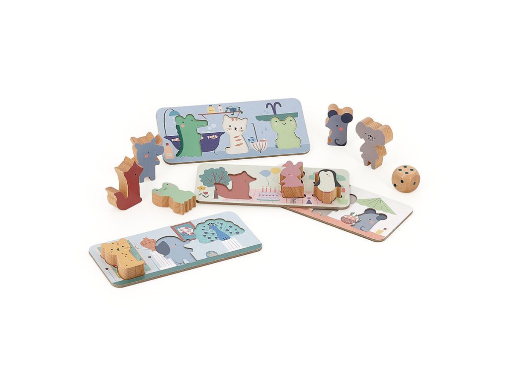 Roztomilá zvířátka z krásně ilustrované dřevěné herní sady si zamilují děti už od 2 let věku. Hry doprovázejí jemné kresby výtvarnice Sarah Betz a zvířátka ožívají v každé ze čtyř klasických her – husí hře, hadech a žebřících, bingu a magnetickém rybaření. Jednoduchá pravidla, barevné provedení a možnost střídání aktivit činí z této sady ideálního společníka pro první seznamování s hrami. Dítě si při hře přirozeně osvojuje základní počítání, učí se házet kostkou, rozlišovat obrázky, čekat na svůj tah a vnímat pravidla. Rybaření pomáhá zlepšovat koordinaci ruka-oko a jemnou motoriku, zatímco bingo trénuje paměť a soustředění. Sada je vyrobená ze dřeva a je uložena v praktické krabici, která usnadňuje skladování. Skvělý způsob, jak si společně užít chvíle plné smíchu, učení a sdílení. Ideální jako první společenská hra pro celou rodinu.
